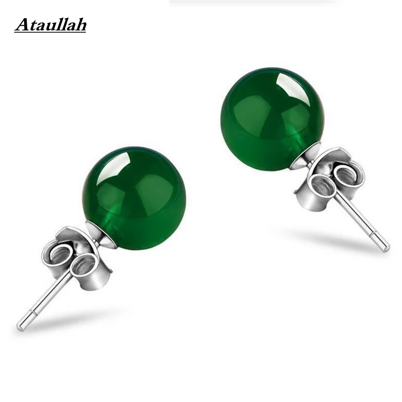 Real 925 Silver Natural Opal Jade Agate Women Stud Earrings Fashion Anti-allergy 925 Jewelry Girl Gift Brand EWC029