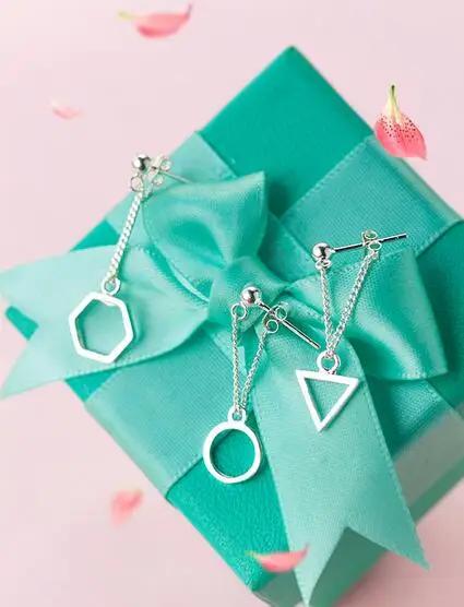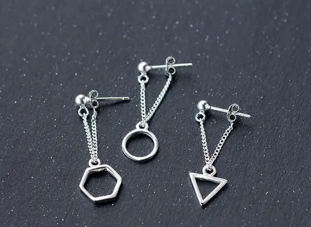 Real. 925 Sterling Silver jewelry Geometric Open Circle /Triangle /Hexagon dangle Tassel Earrings Charms GTLE1400