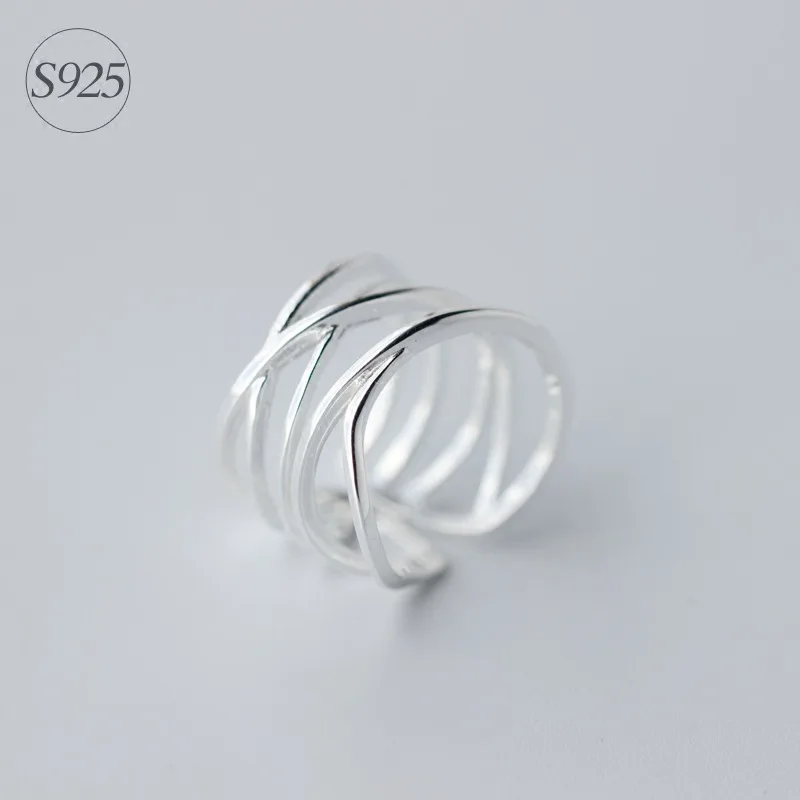 Real. 925 Sterling Silver Jewelry Multi-Rows/layers Cross Criss Twisted LONG Ring Wrap Ring Adjustable drop shipping GTLJ978