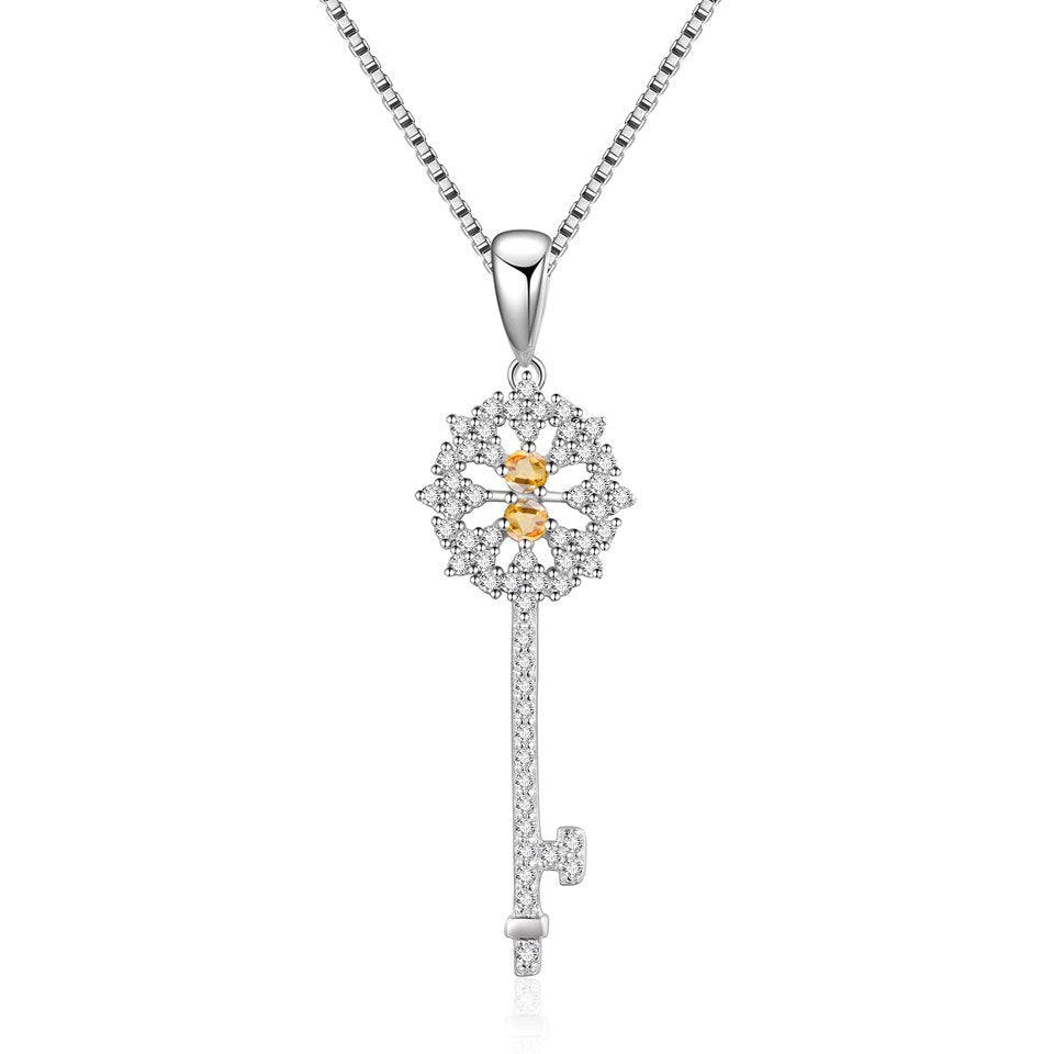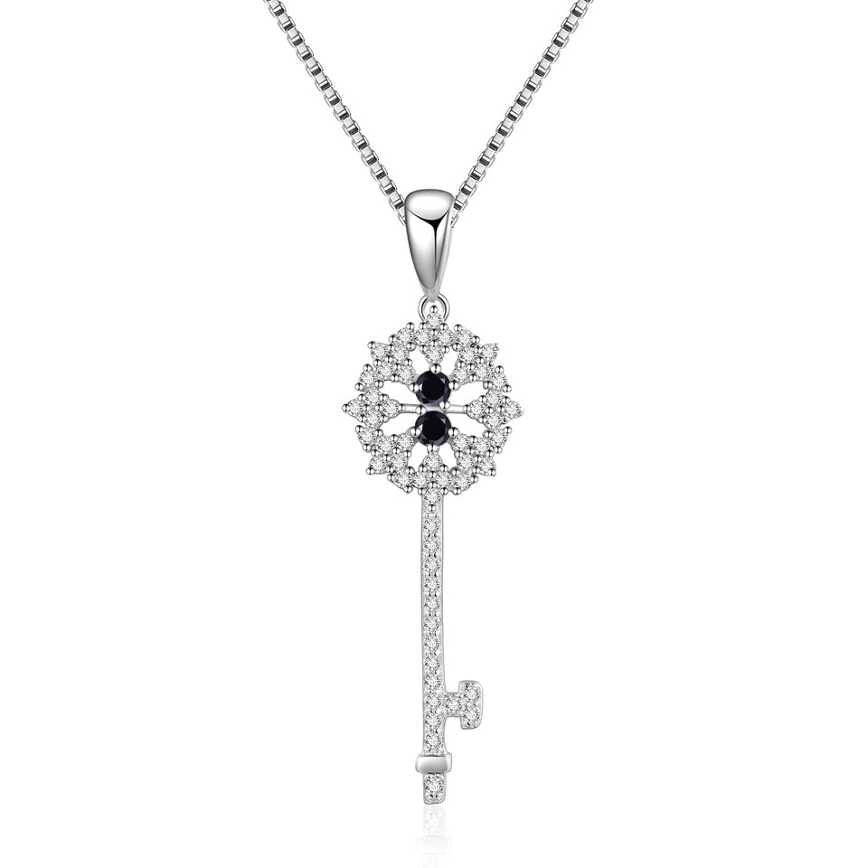 Real 925 Sterling Silver Pendant With Chain 6 Kinds Natural Gemstone Black Sapphire Key Pendant Necklaces For Women Fine Jewelry