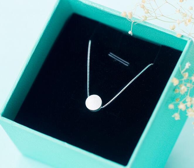 Real. 925 Sterling Silver Jewelry Round Matte Lucky Bean Pendant necklace 8MM CHAIN for friends /family member gift GTLX724