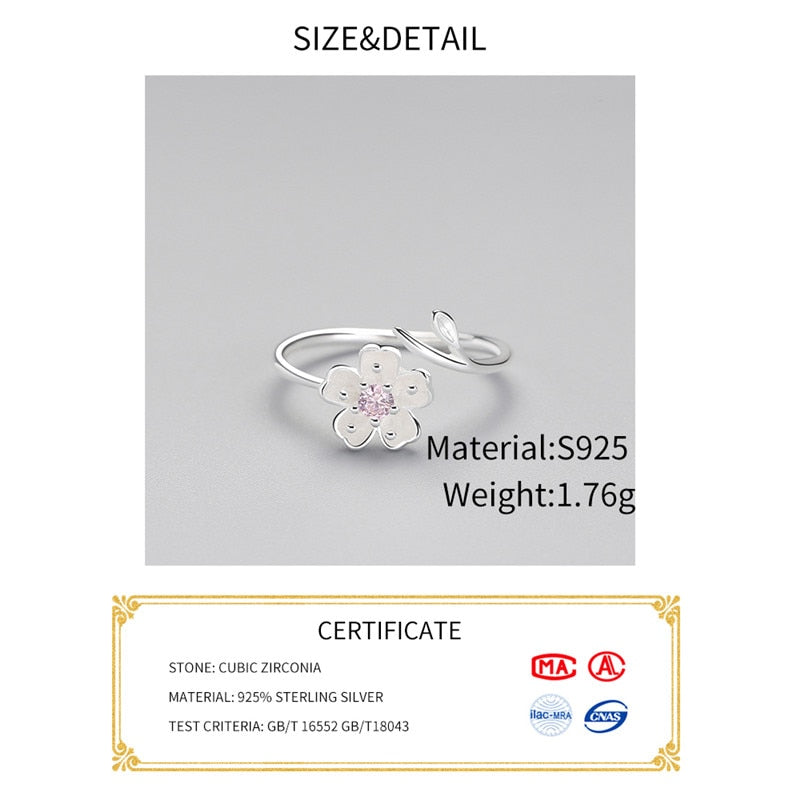 Real 925 Sterling Silver Zircon Enamel Plum Flower Adjustable Ring Elegant Fine Jewelry For Women Romantic Party Bijoux