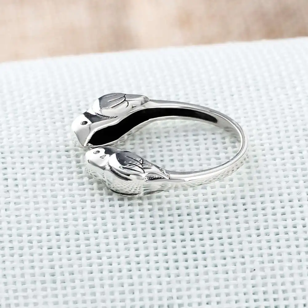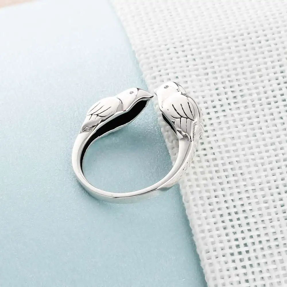Real Solid Pure 925 Sterling Silver Jewelry Rings for Women New Cute Double Bird Anillos Finger Trendy Fine Jewelry Accessorie