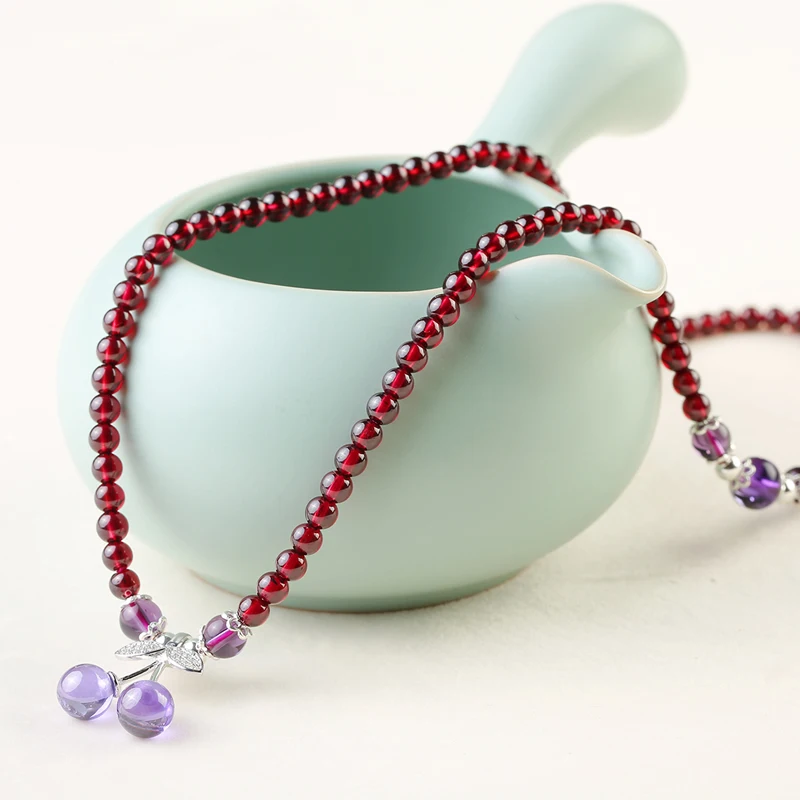 Red Natural Garnet Bracelets Amethyst Crystal Love Cherry Customized Elegant Jewelry January Birthstone Birthd Gift