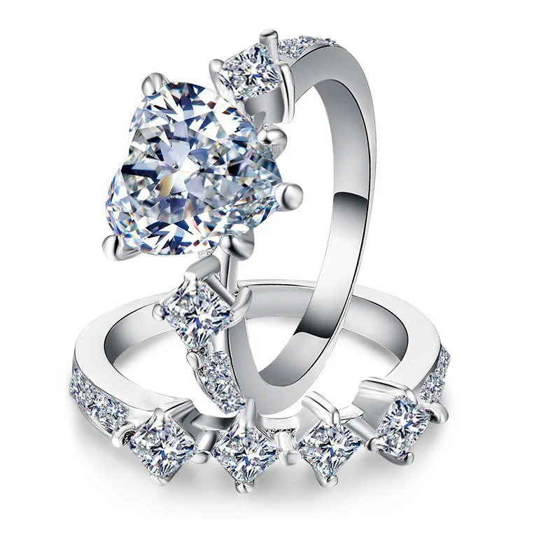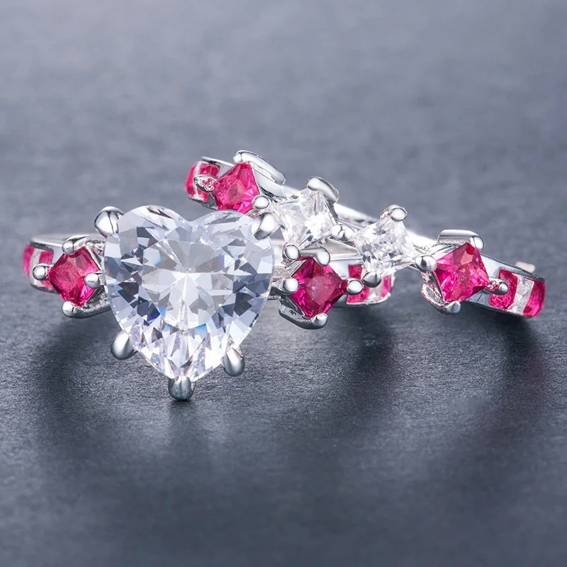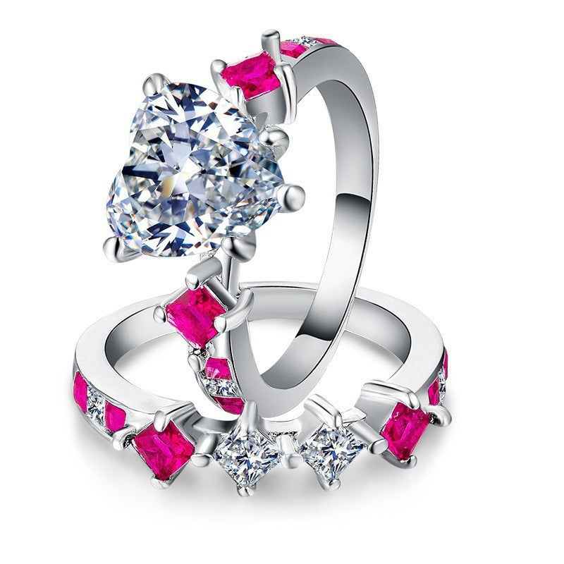 red. White sapphire ring [fashion empire full of lucky grass] copper plated silver party party ring stainless steel jewelry