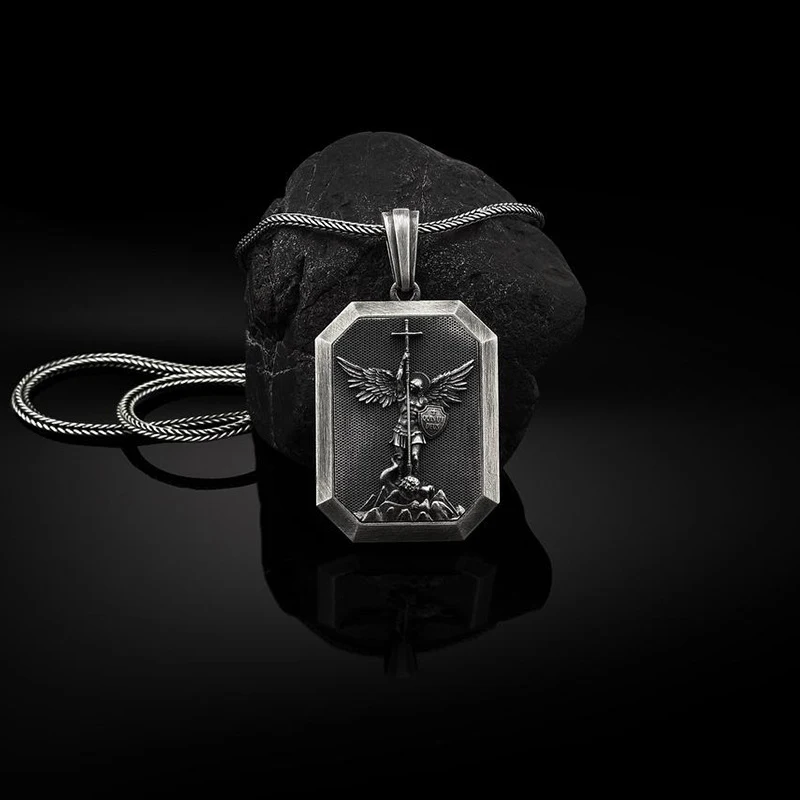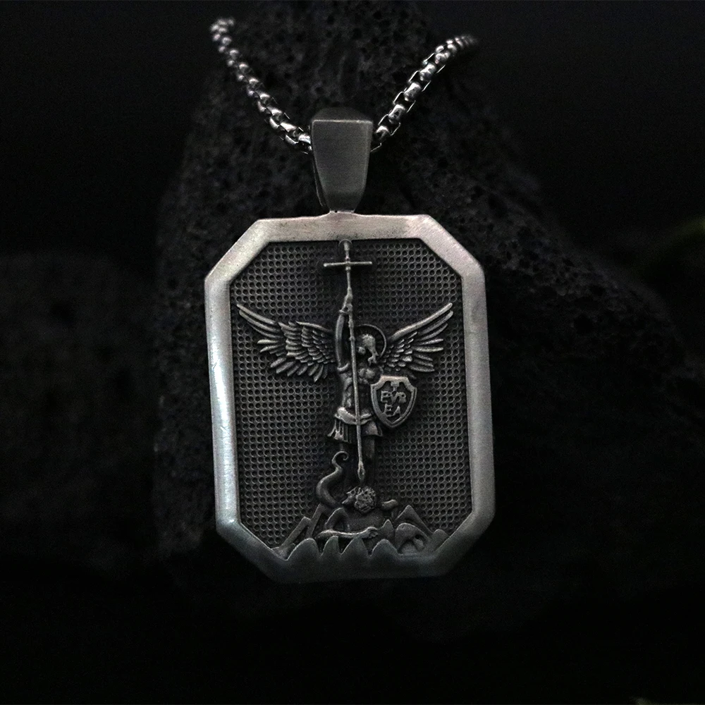 Religious vintage Jewelry on the neck Angel Guardian pure tin pendant necklace men stainless steel chain necklace