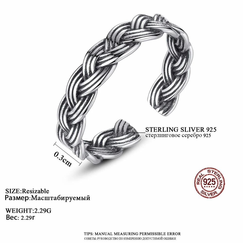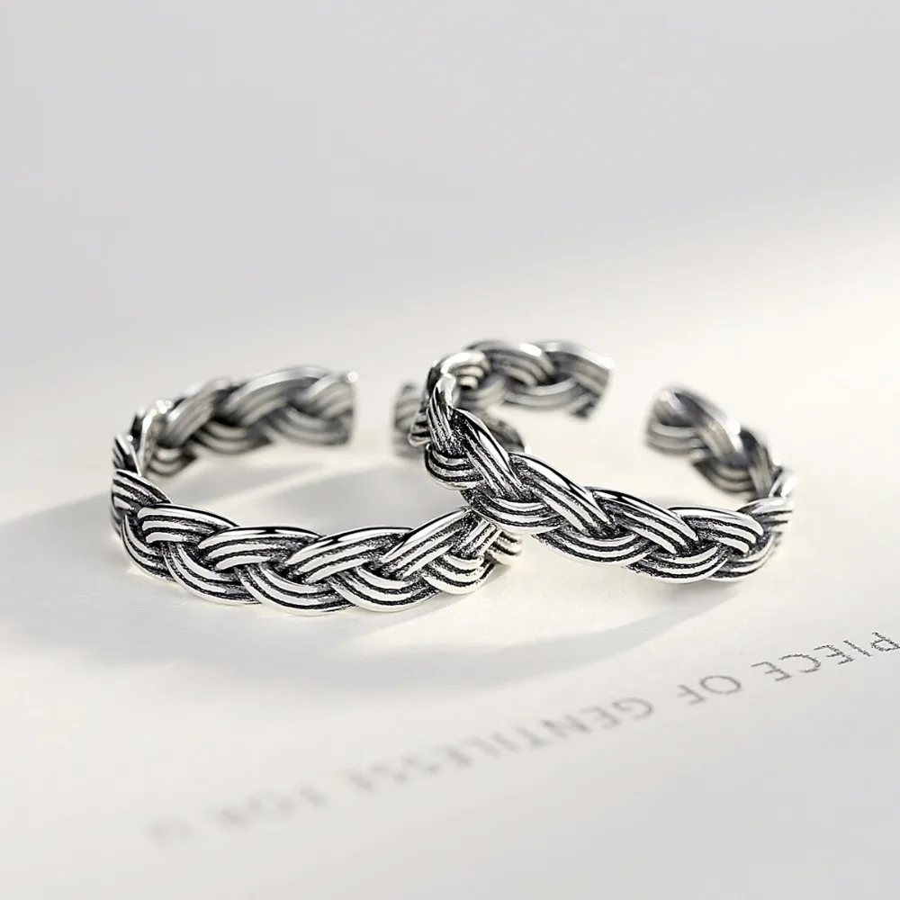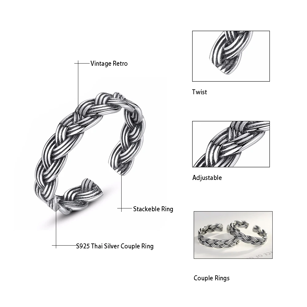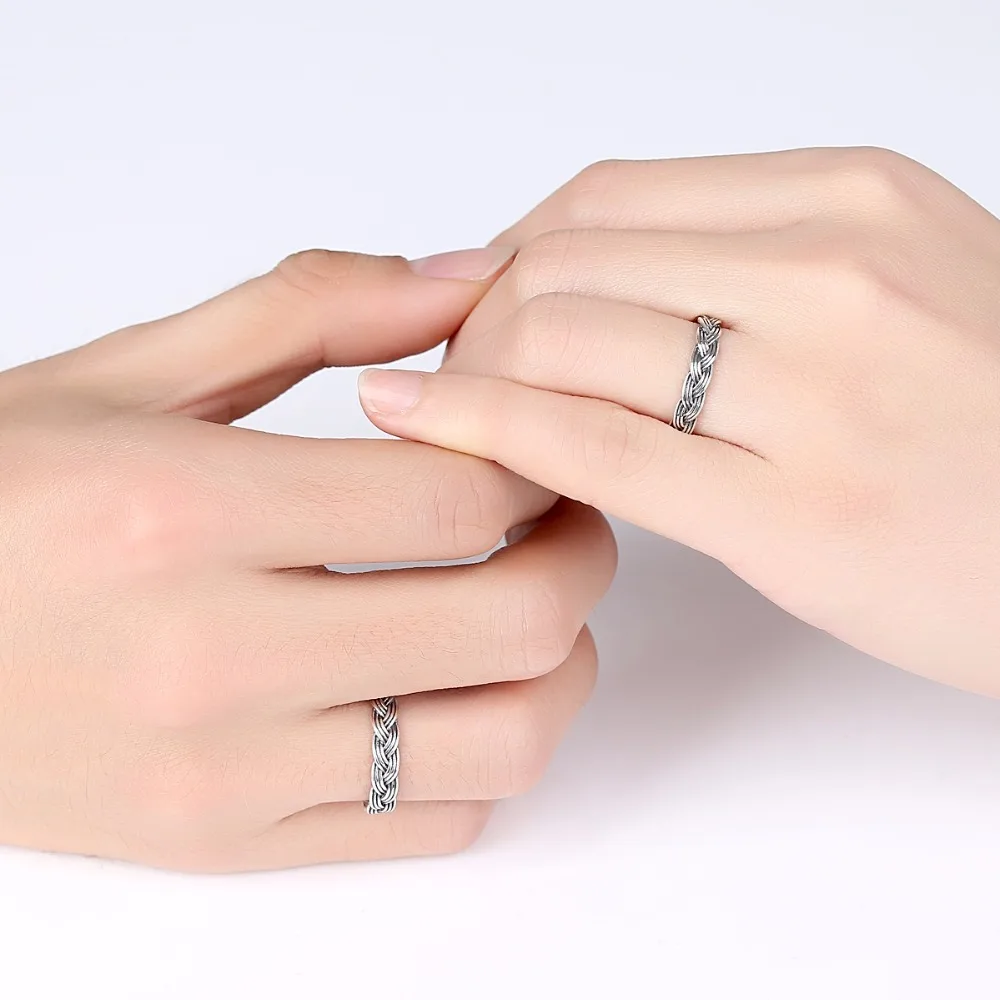 Retro 925 Sterling Silver Twist Simple Couple Rings Solid Vintage Rings Fashion Jewelry Lovers Rings for Women Men