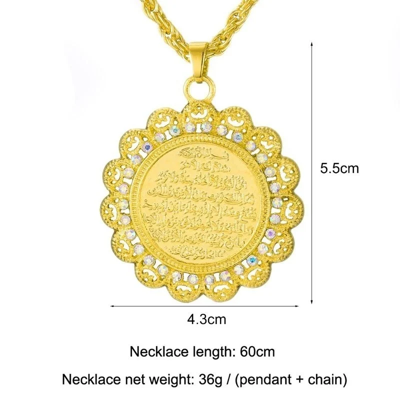 Retro Arab Muslim Islam Arah Scripture Pendant Rhinestone Necklace Religious Jewelry