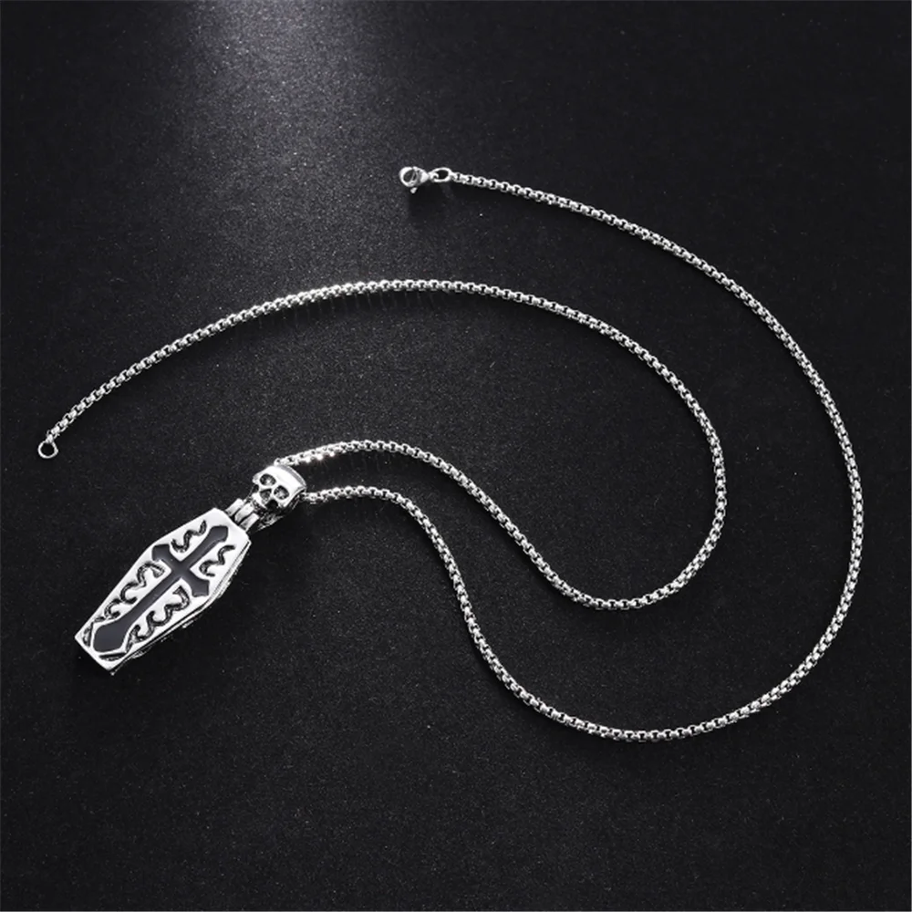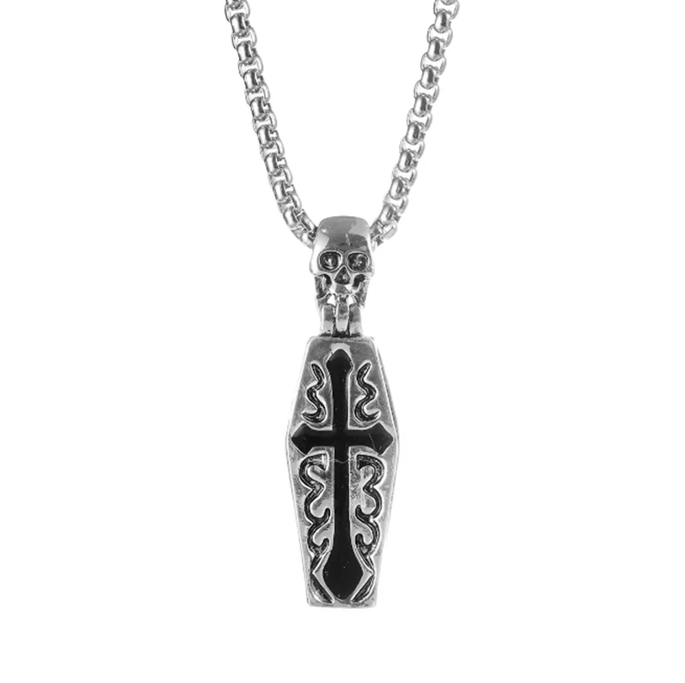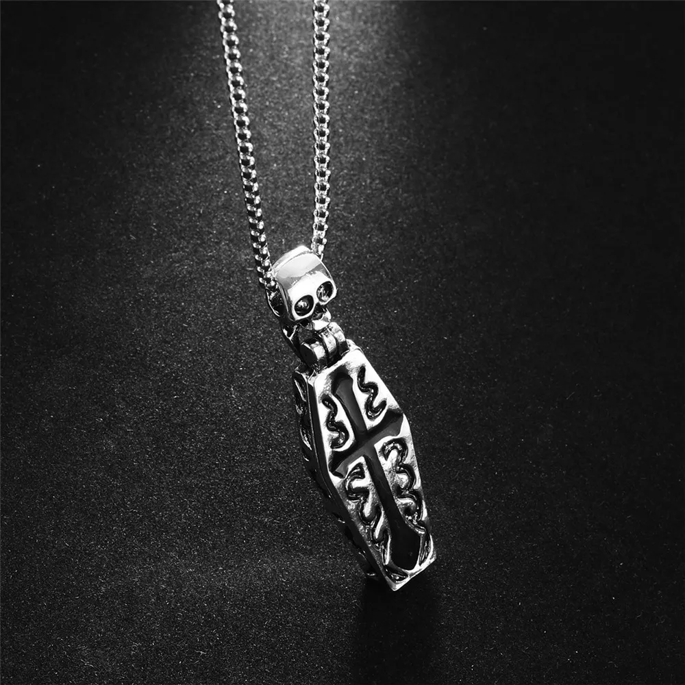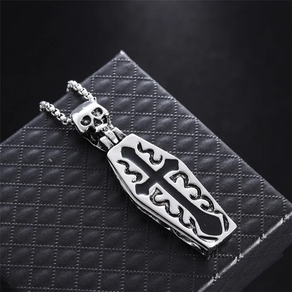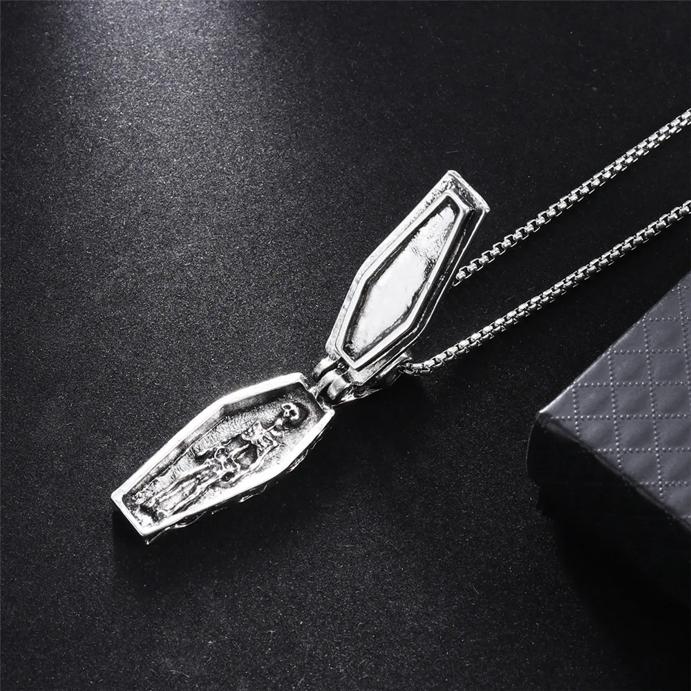 Retro Flip Coffin Skull Ruyi Pendant Hip Hop Necklace Pendant Male Titanium Steel Female Long Sweater Chain