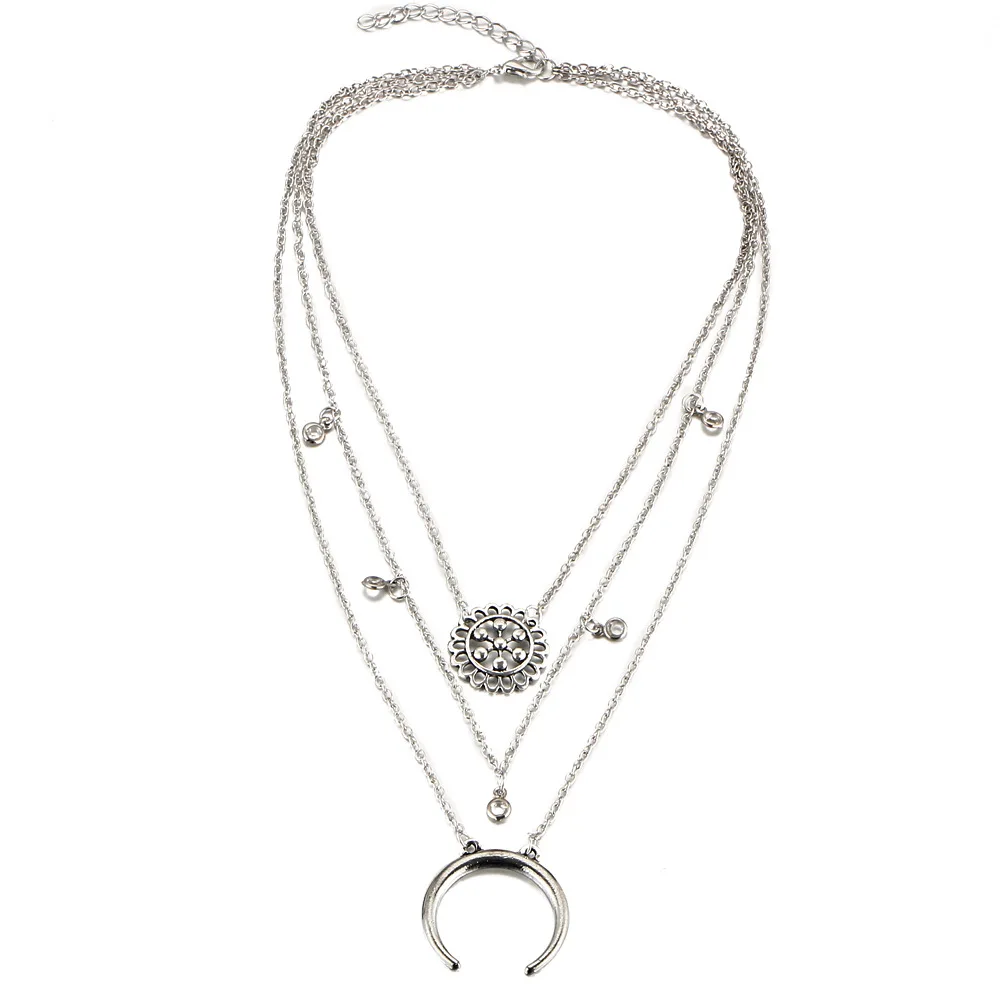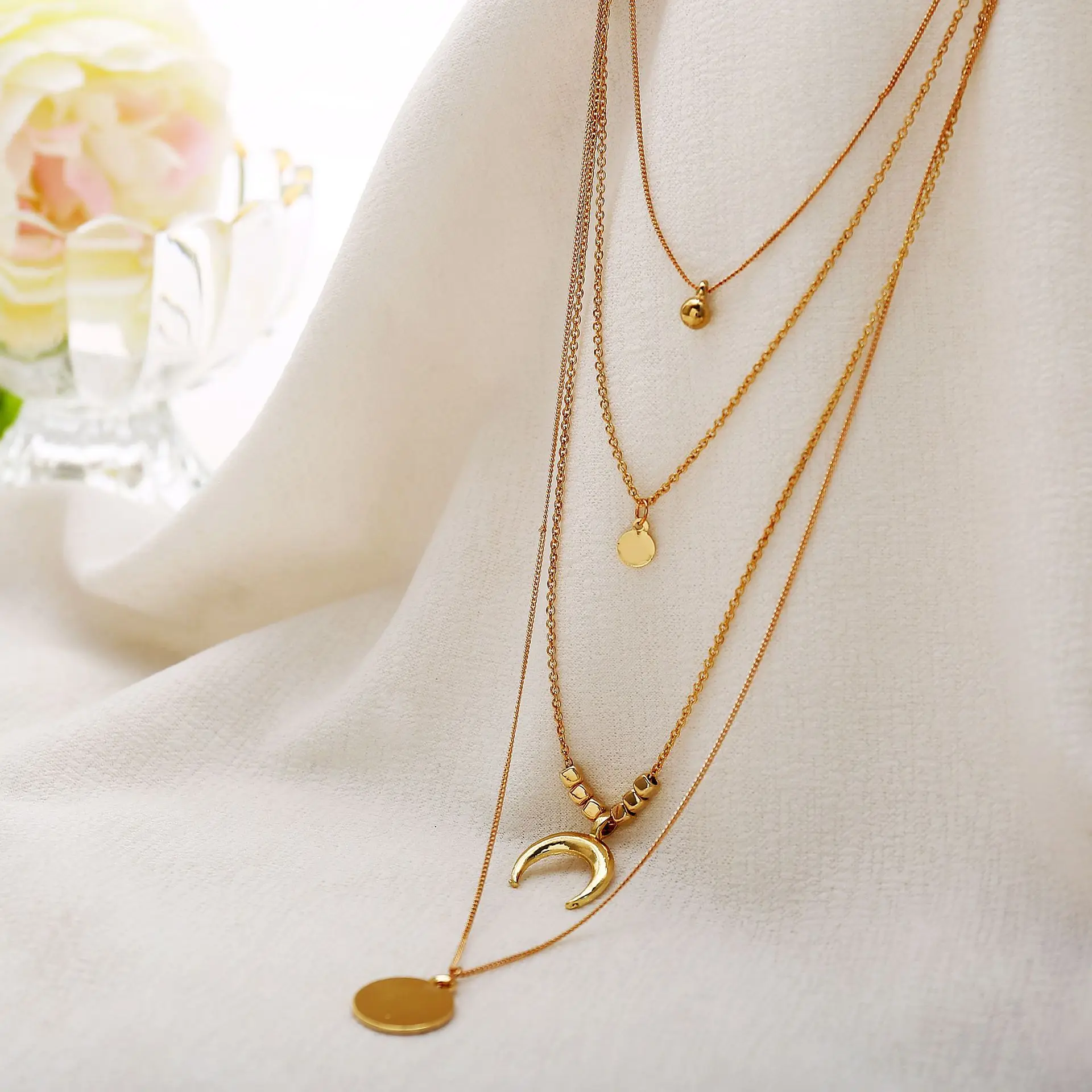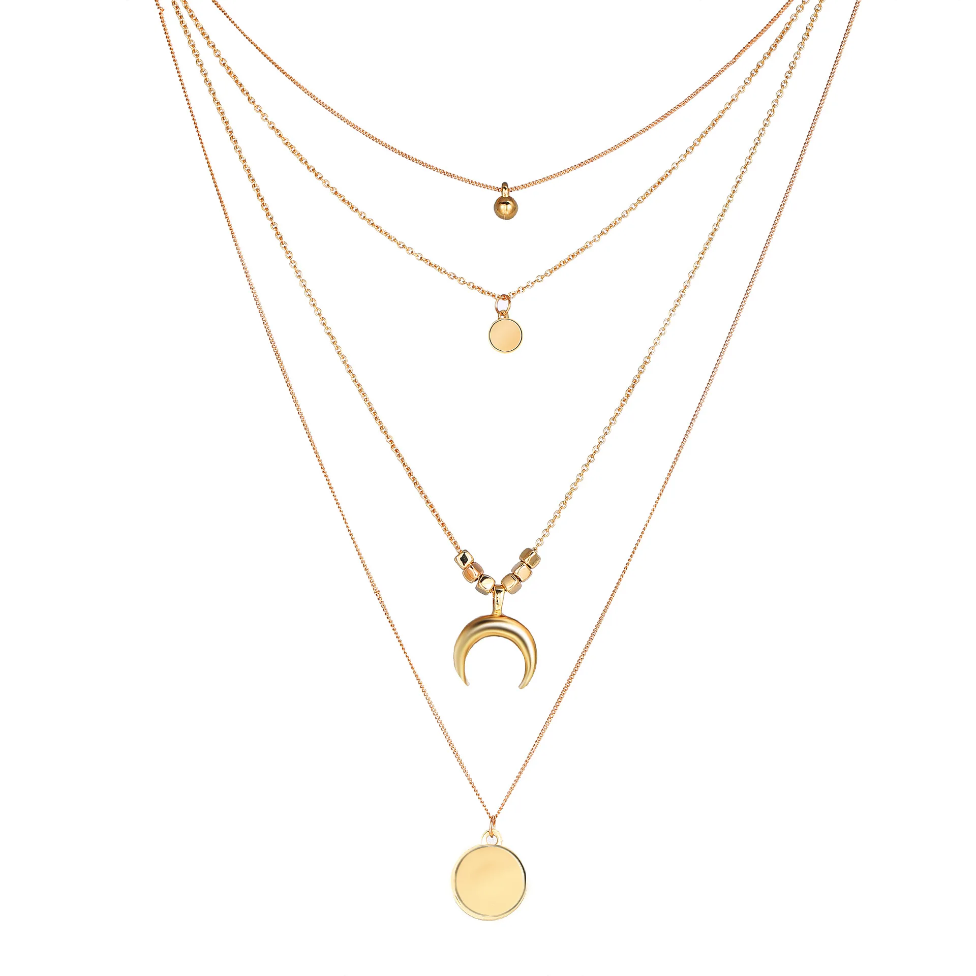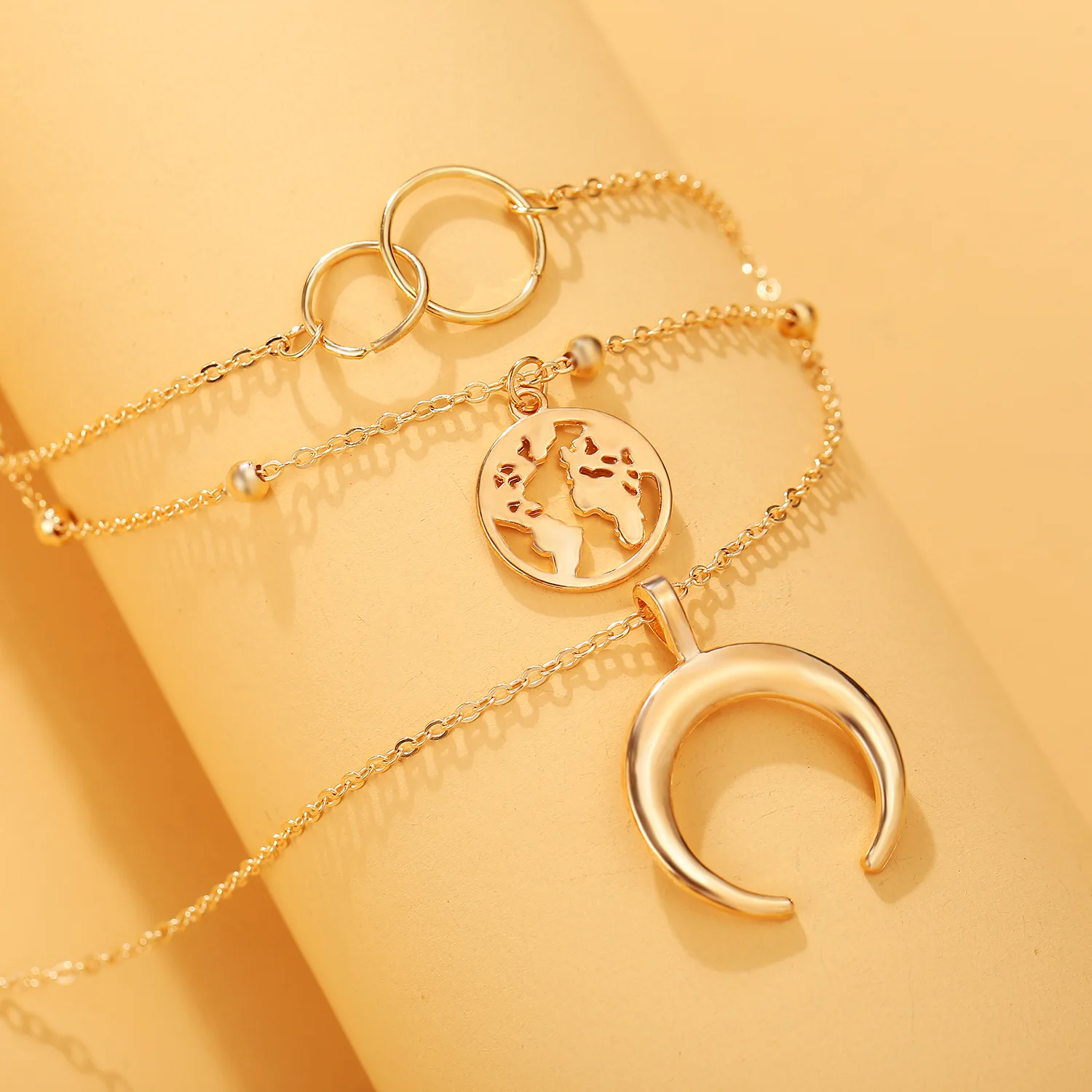 Retro Moon World Map Circle Pendant Multilayer Gold Colodr Necklace Party Charm Jewelry Accessories For Women
