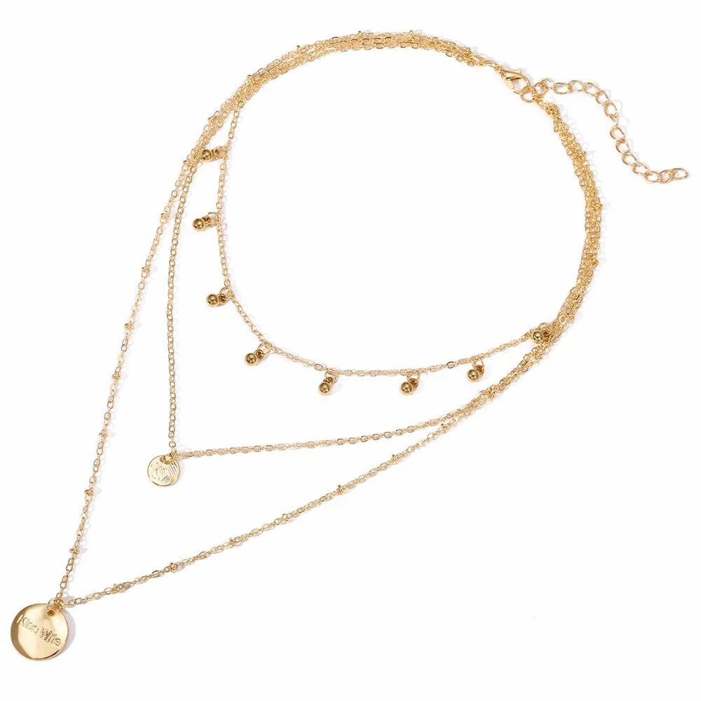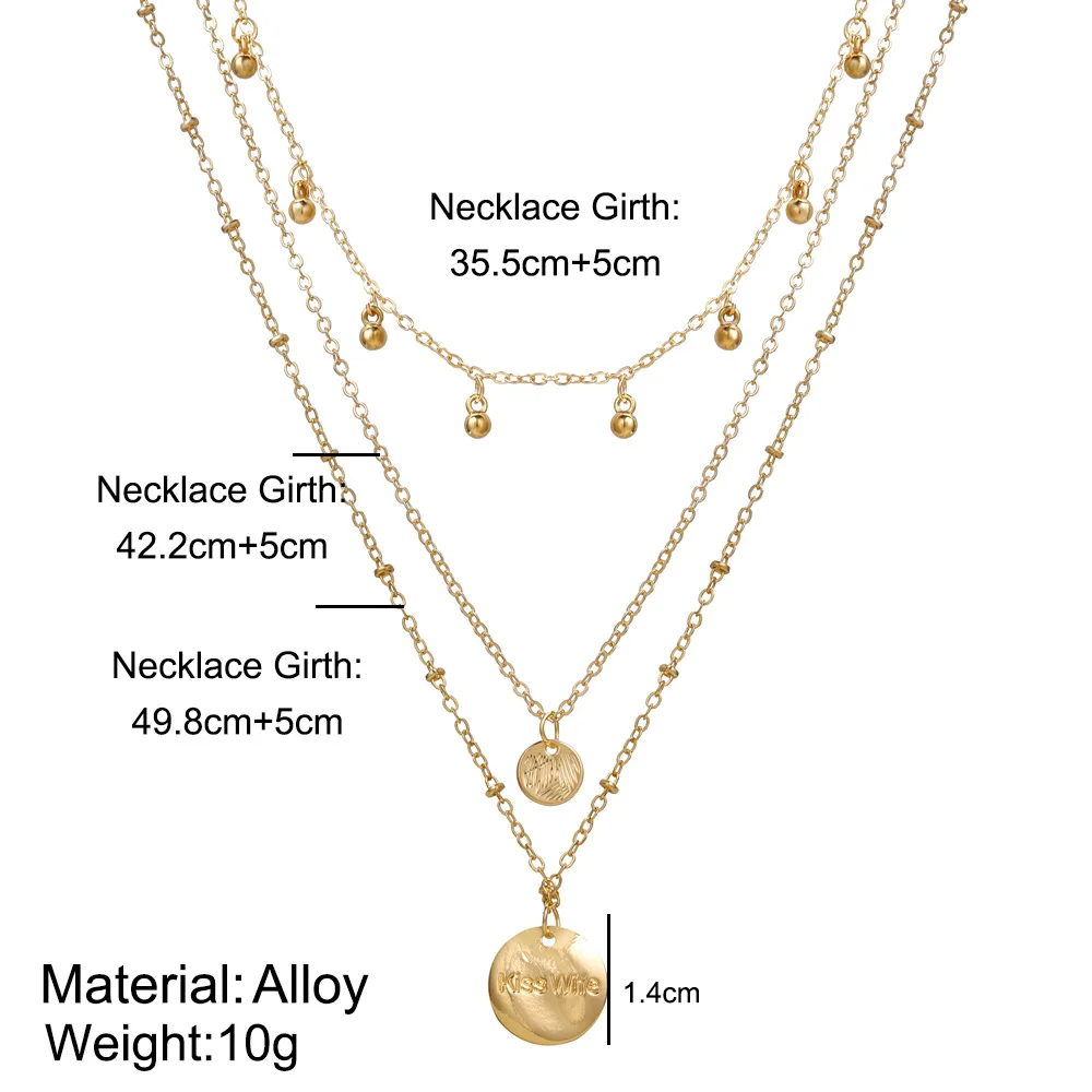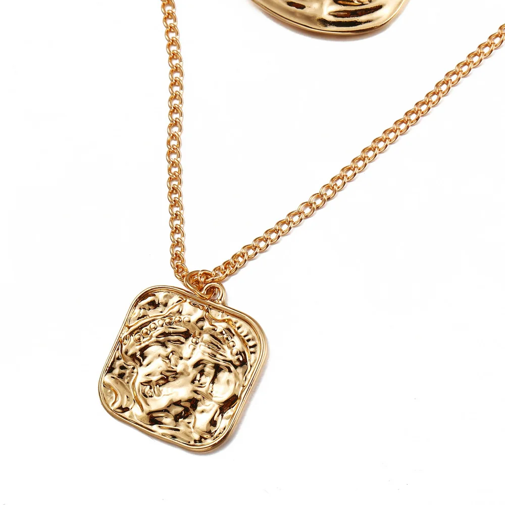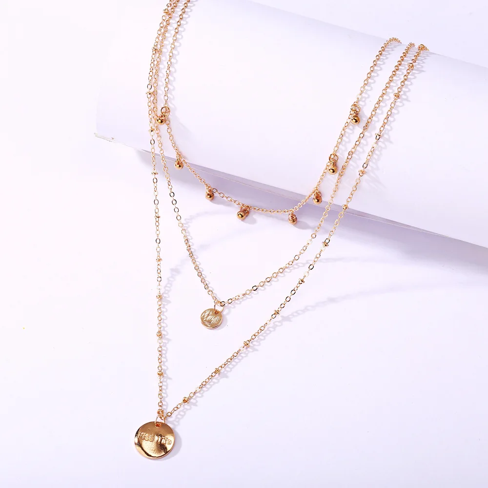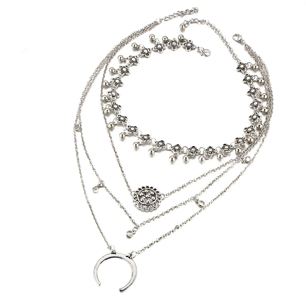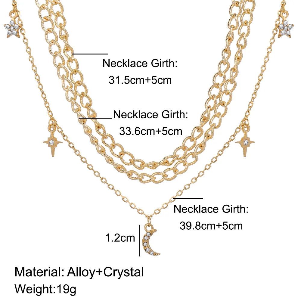 Retro Moon World Map Circle Pendant Multilayer Gold Colodr Necklace Party Charm Jewelry Accessories For Women