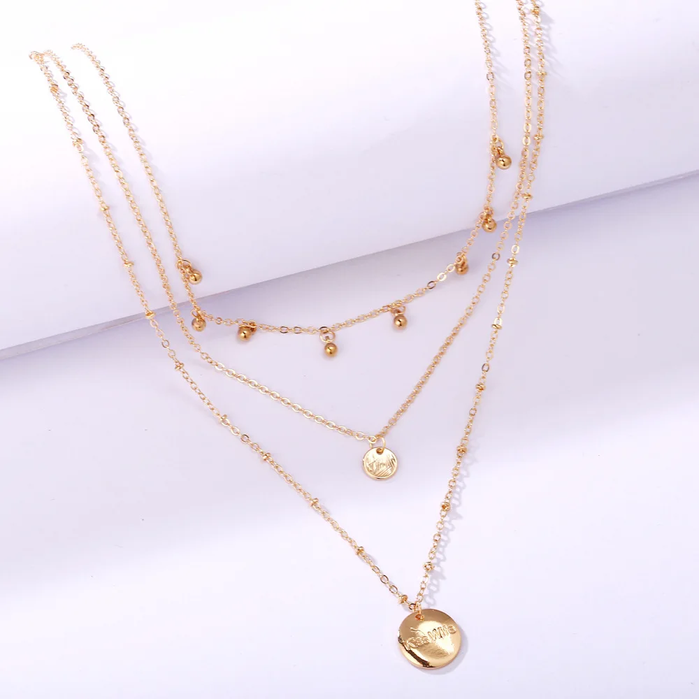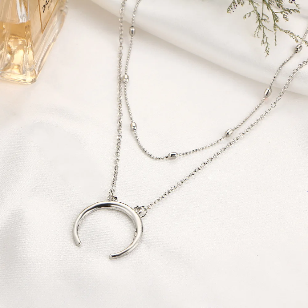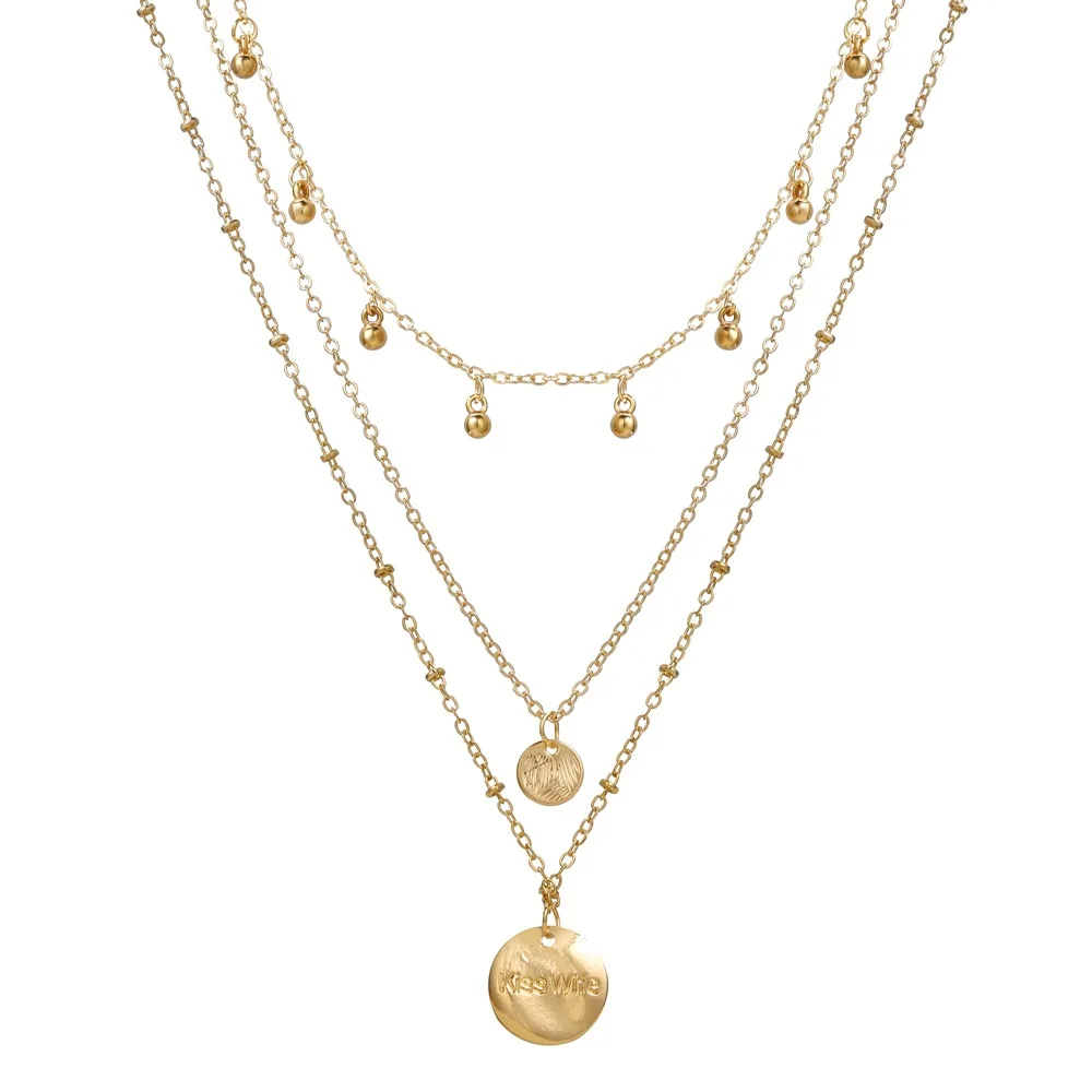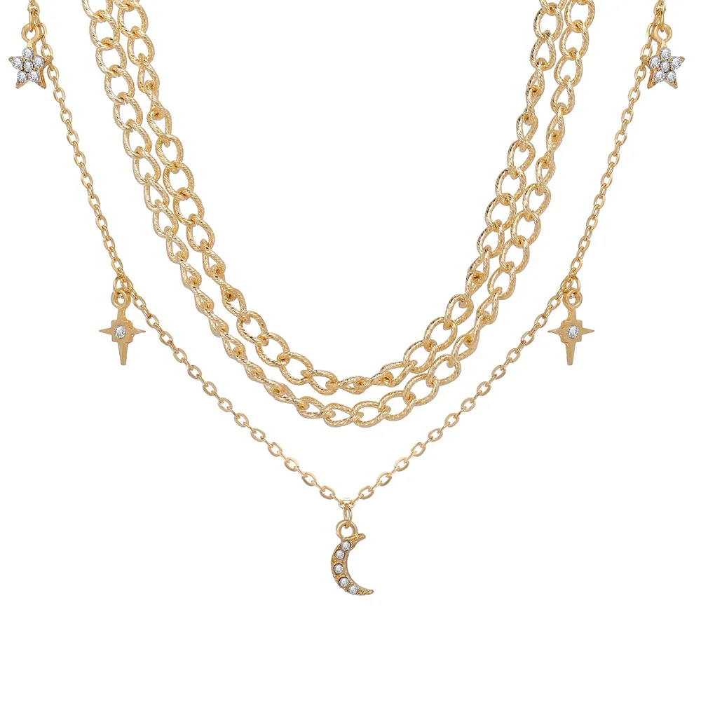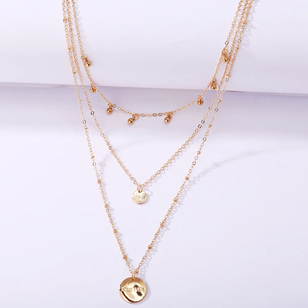 Retro Moon World Map Circle Pendant Multilayer Gold Colodr Necklace Party Charm Jewelry Accessories For Women