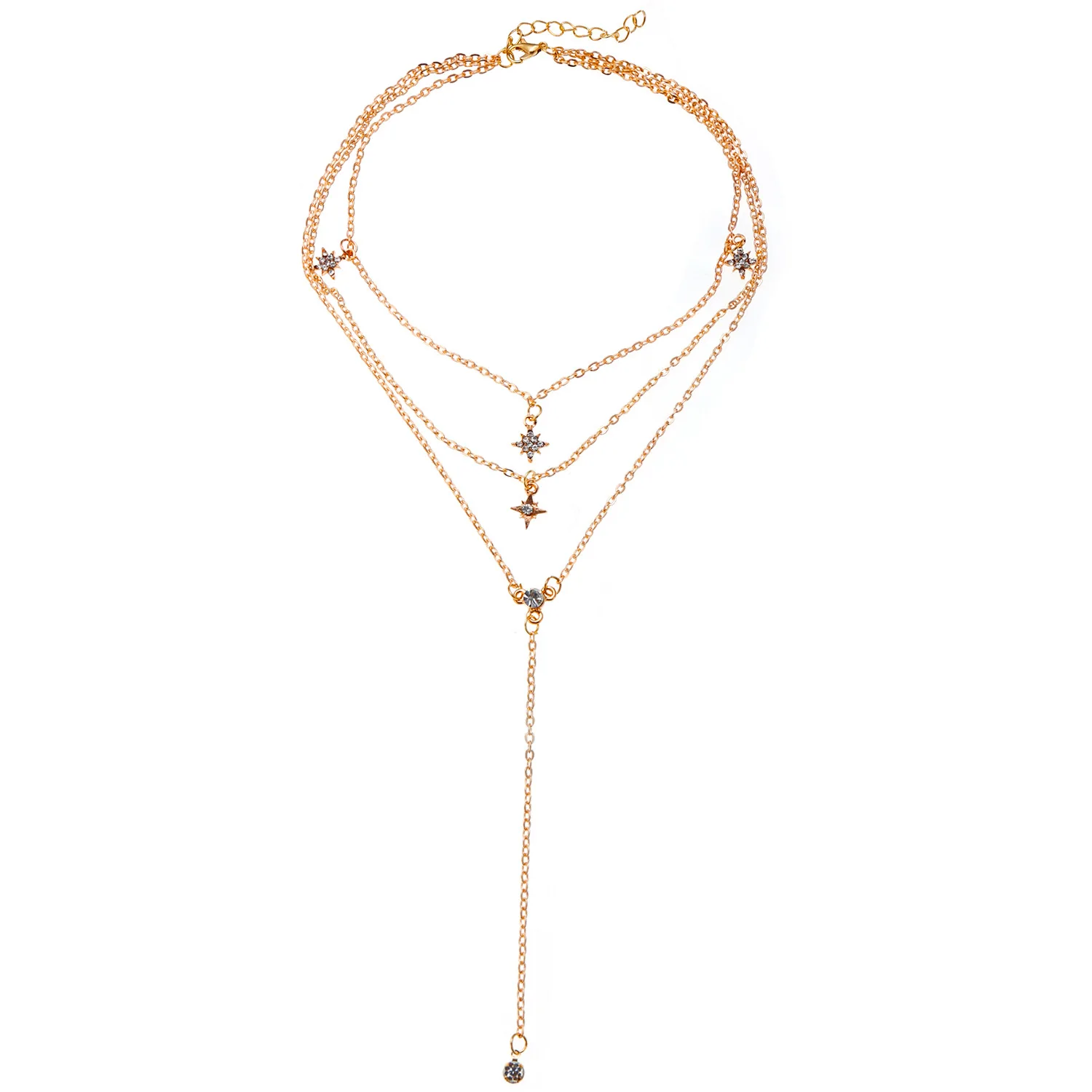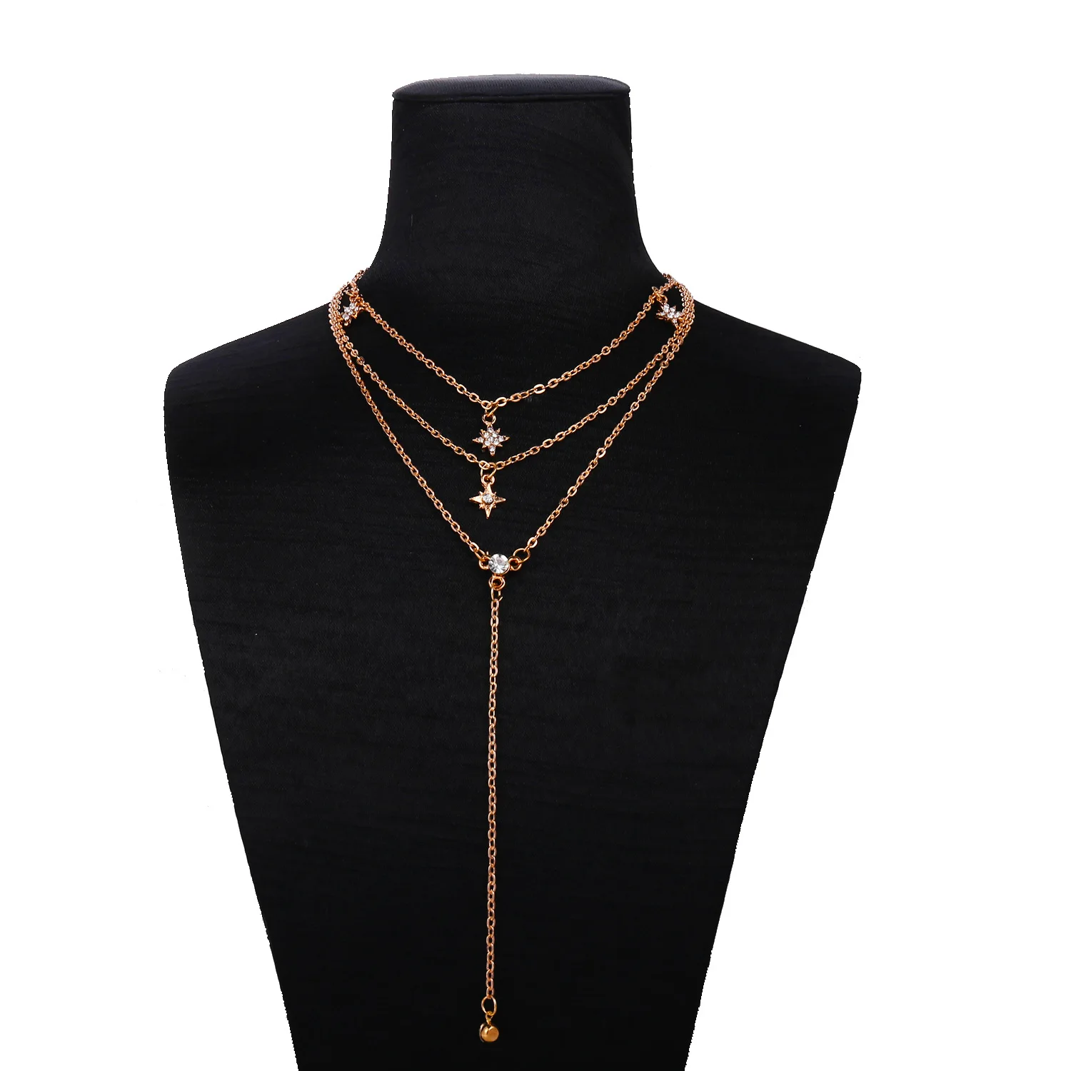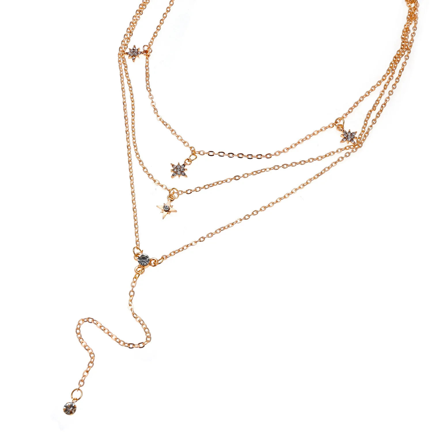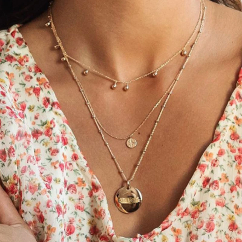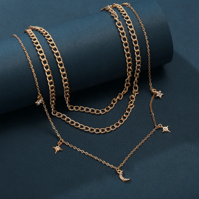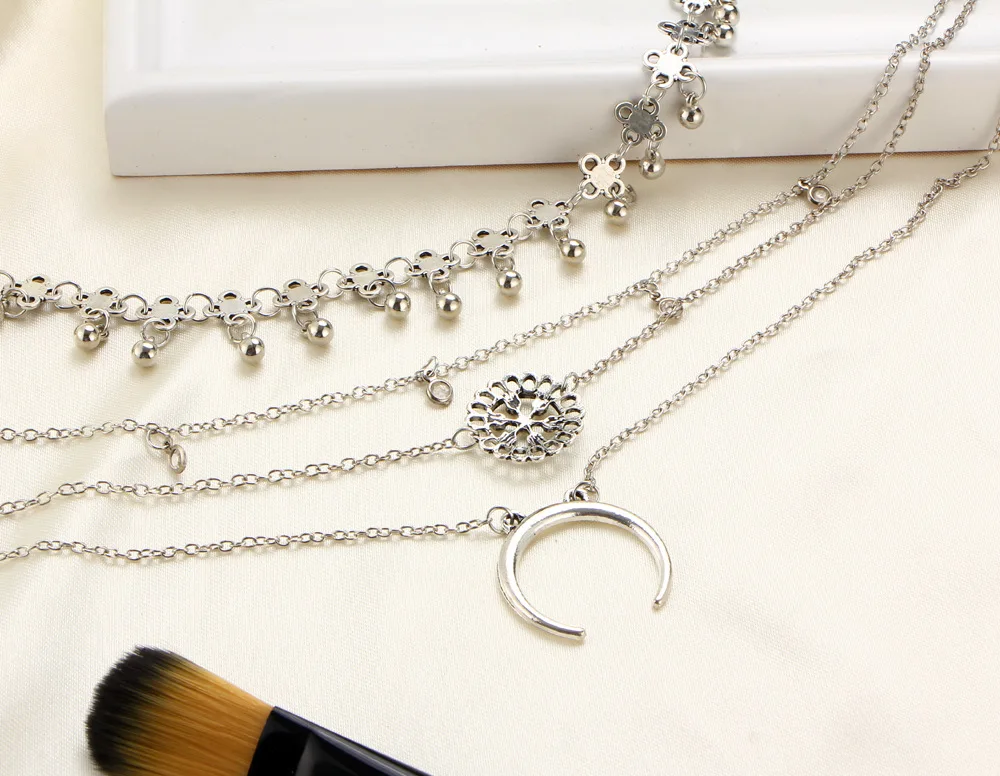Retro Moon World Map Circle Pendant Multilayer Gold Colodr Necklace Party Charm Jewelry Accessories For Women