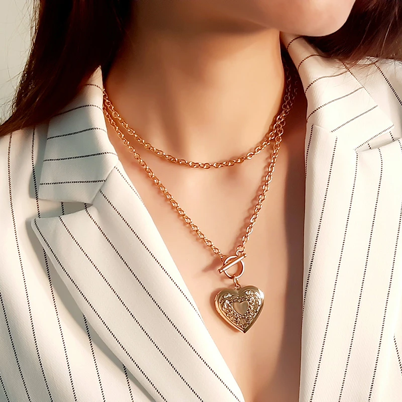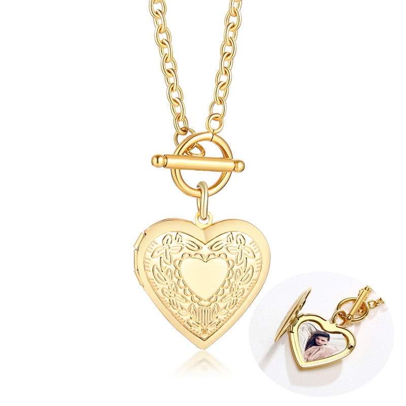 Retro Necklaces Women Heart Friend Photo Picture Frame Locket Pendant Chain Necklace For Mom Friend Gift