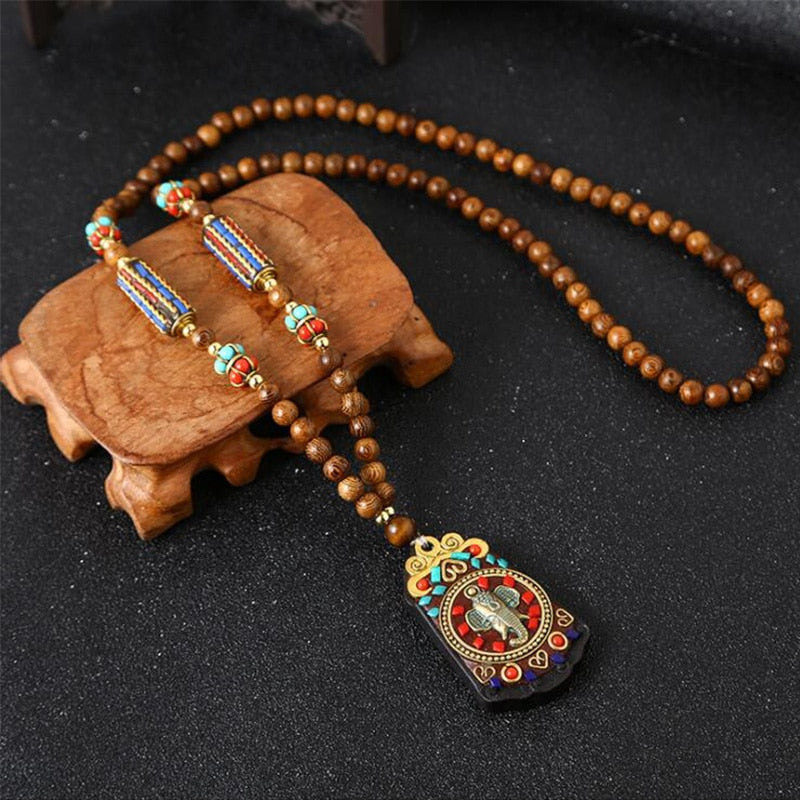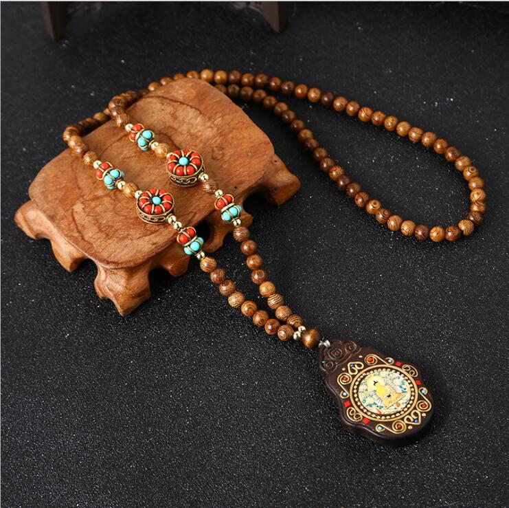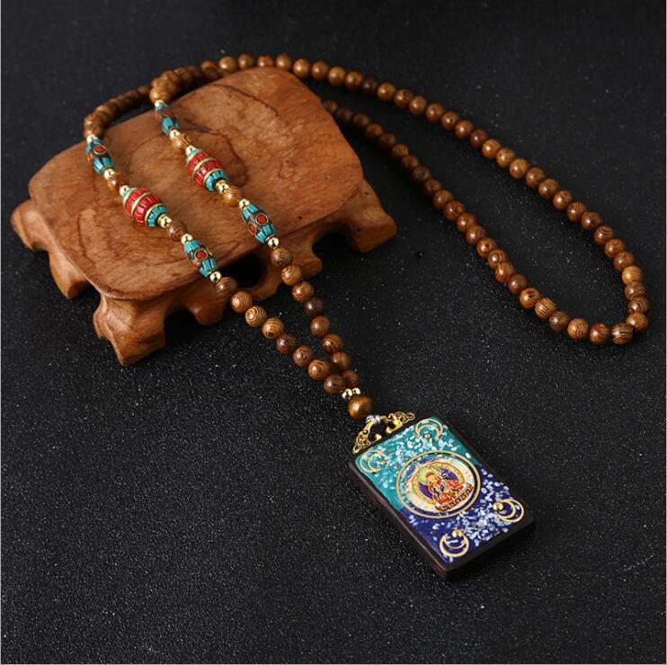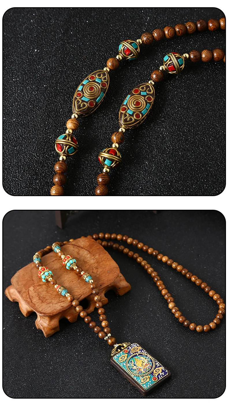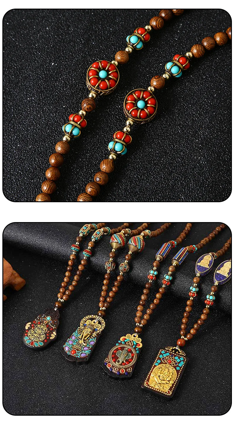 Retro Nepal Beads Long Sweater Necklace Elephant Ganesha Buddhist Prayer Necklace Meditation Spiritual Lucky Amulet Jewelry