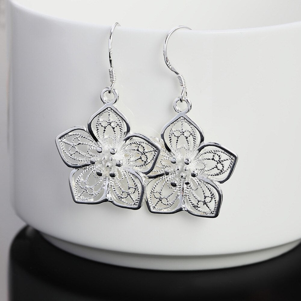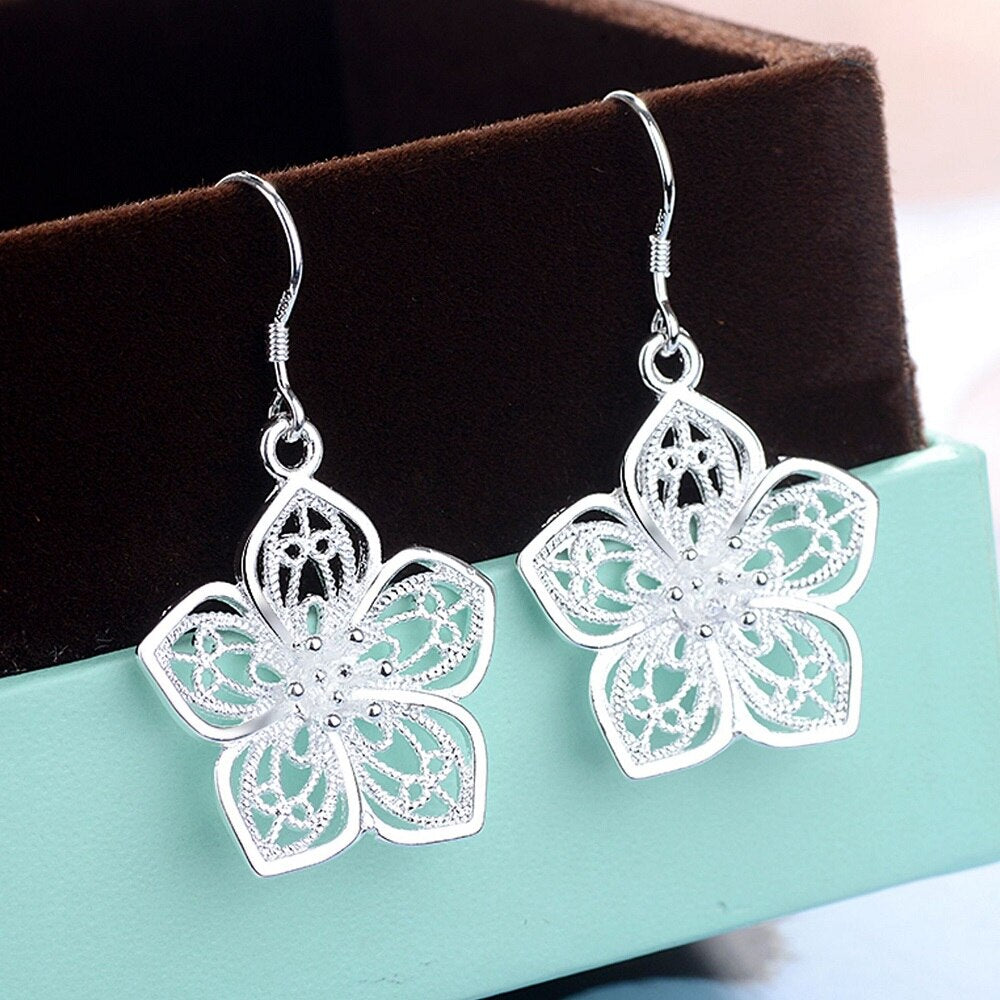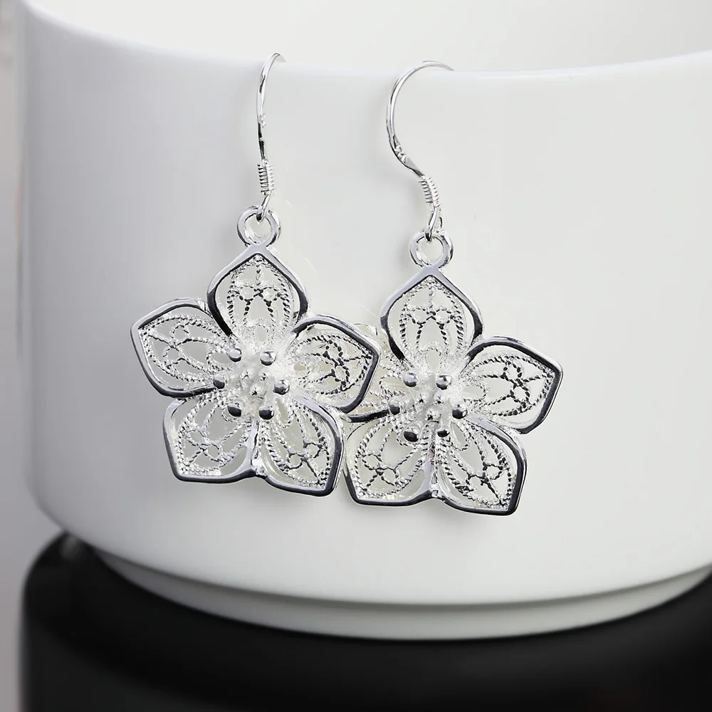 Retro Pretty Flowers 925 Sterling Silver Earrings for women party wedding Jewelry fine gifts