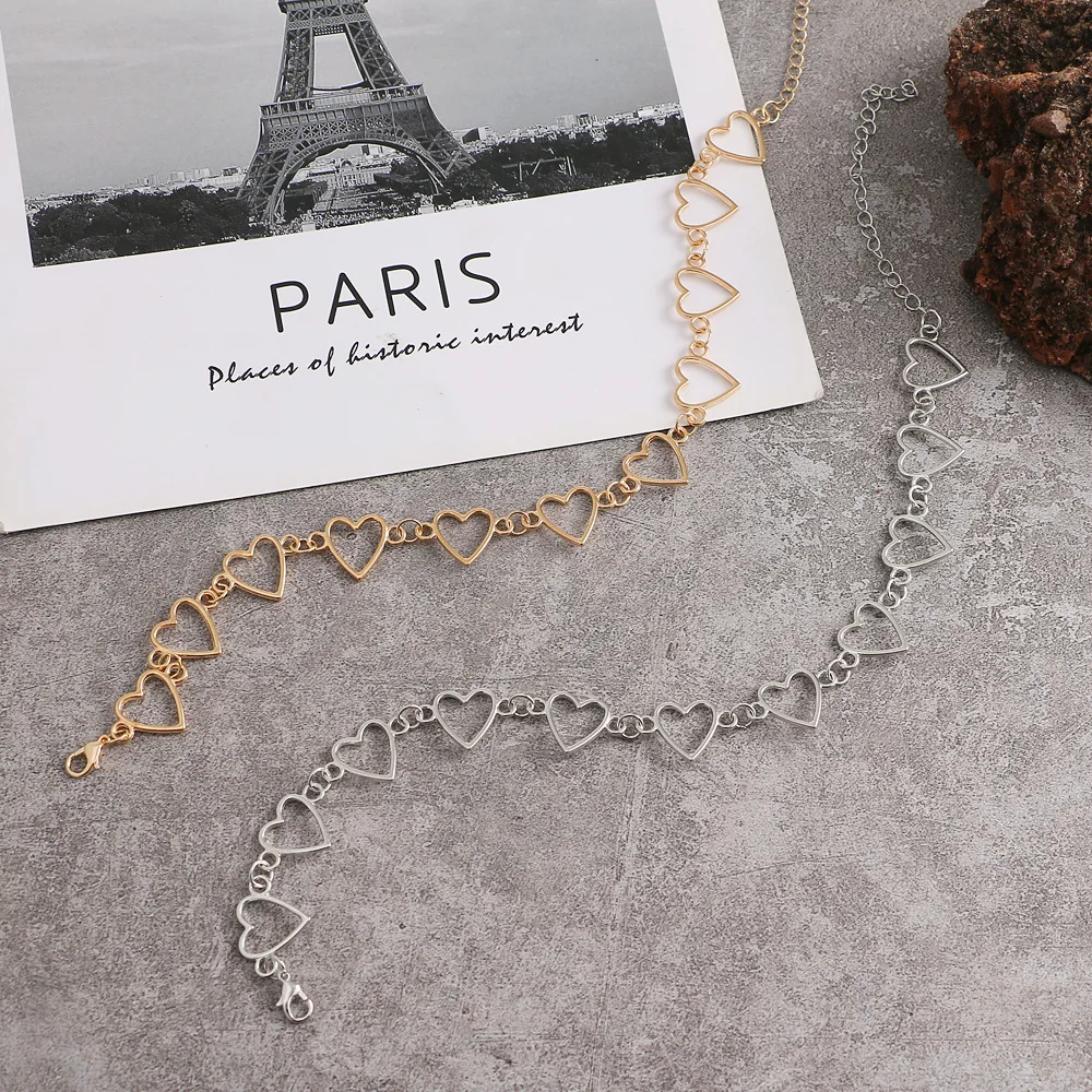Retro Short Pearl Hollow Heart Necklace Clavicle Chain Choker Necklace for Women Bride Wedding Party Jewelry Accessories Gifts