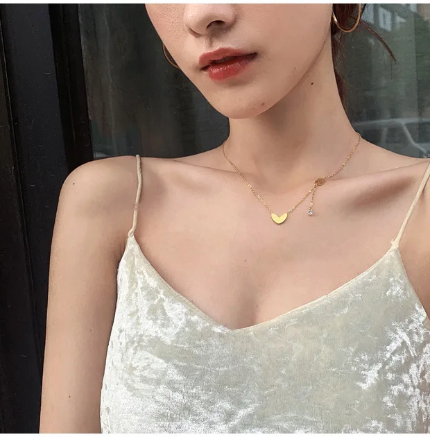 Retro Titanium Steel Heart Necklace For Women Classic Gold Color French Statement Temparement Charms Chain Jewelry Shopping Gift