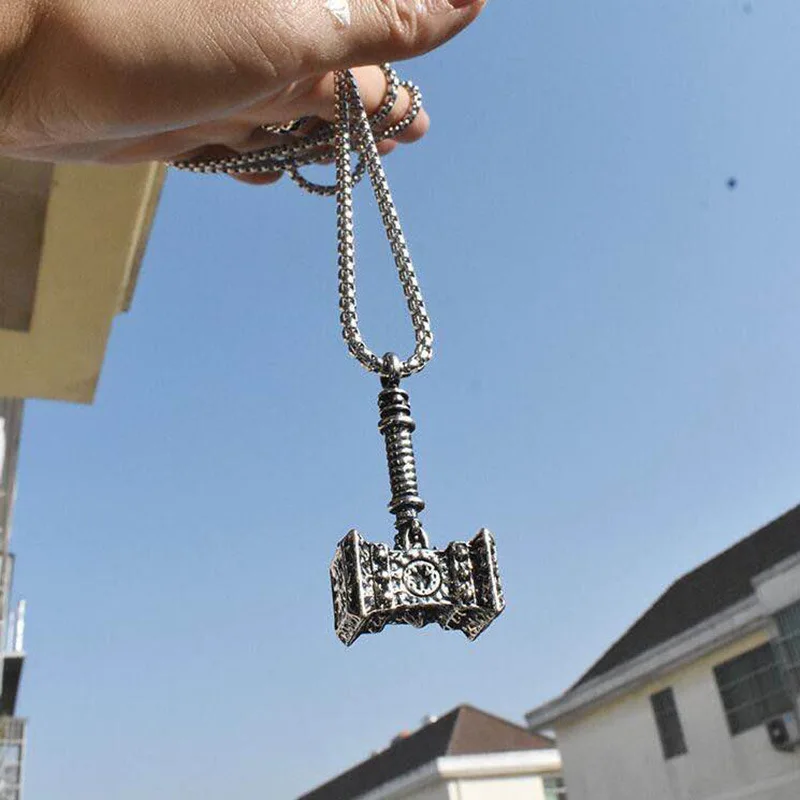 Retro Viking Thor's Hammer Pendant 316L Stainless Steel Viking Norse Odin Thors Mjolnir Hammer Men Rune Amulet Necklace Jewelry