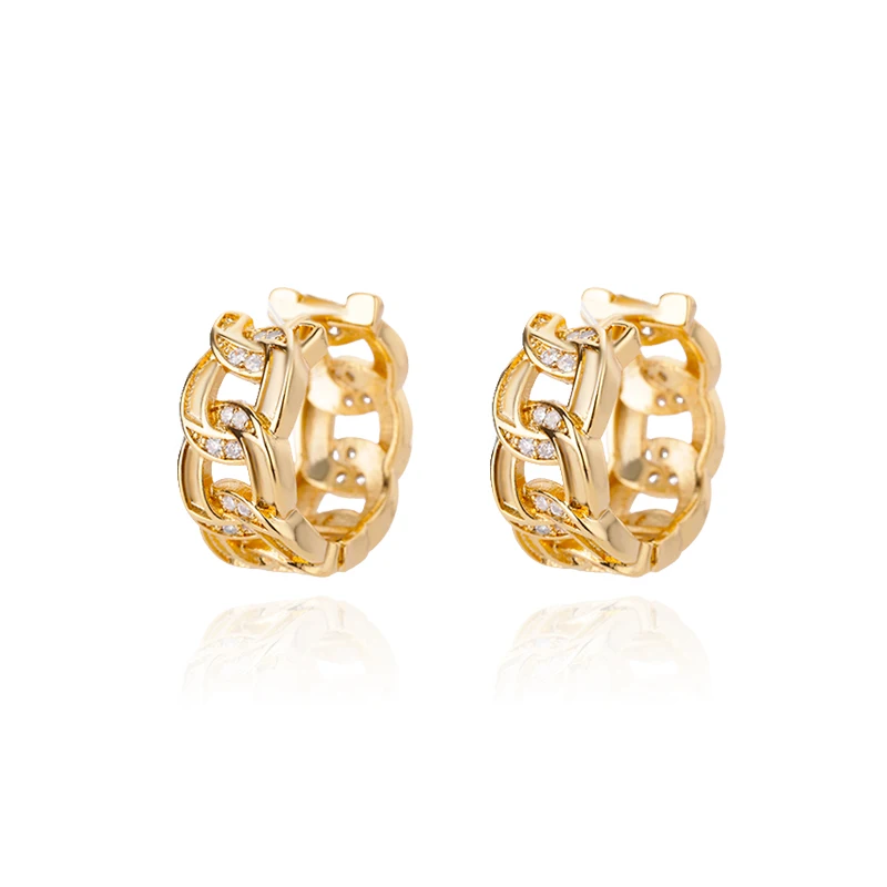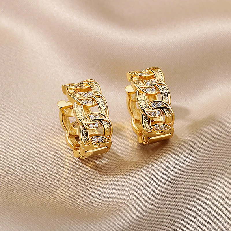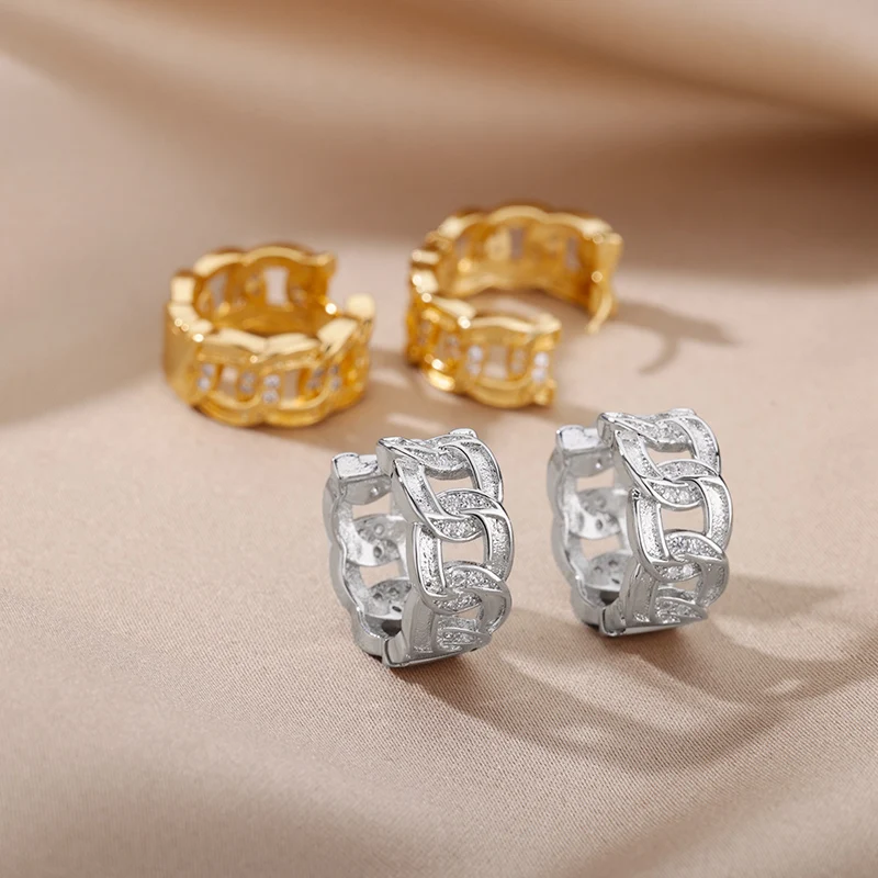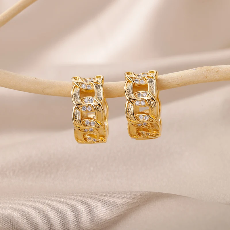 Retro Wide Chain Earrings For Women Stainless Steel Zircon Gold Color Hoop Earrings 2023 Hip-hop Party Jewelry Gift pendientes
