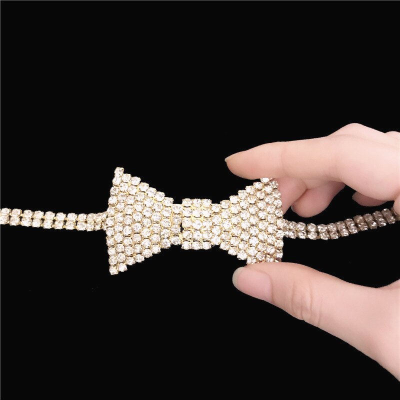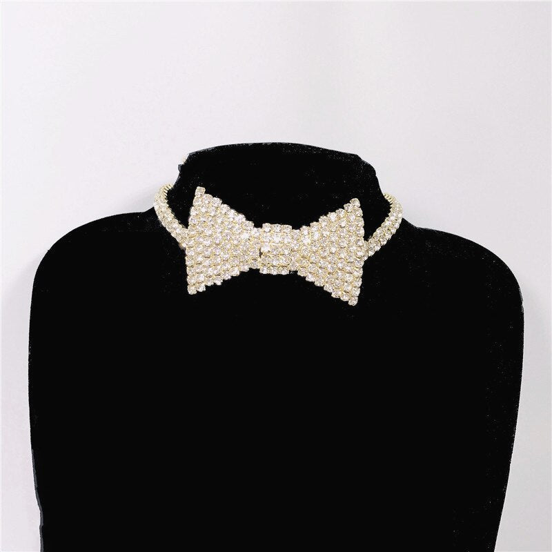 Rhinestone Bow Tie Gold Bridal Choker Necklace for Women Bride Wedding Sexy Crystal Collar Necklace Jewelry Party