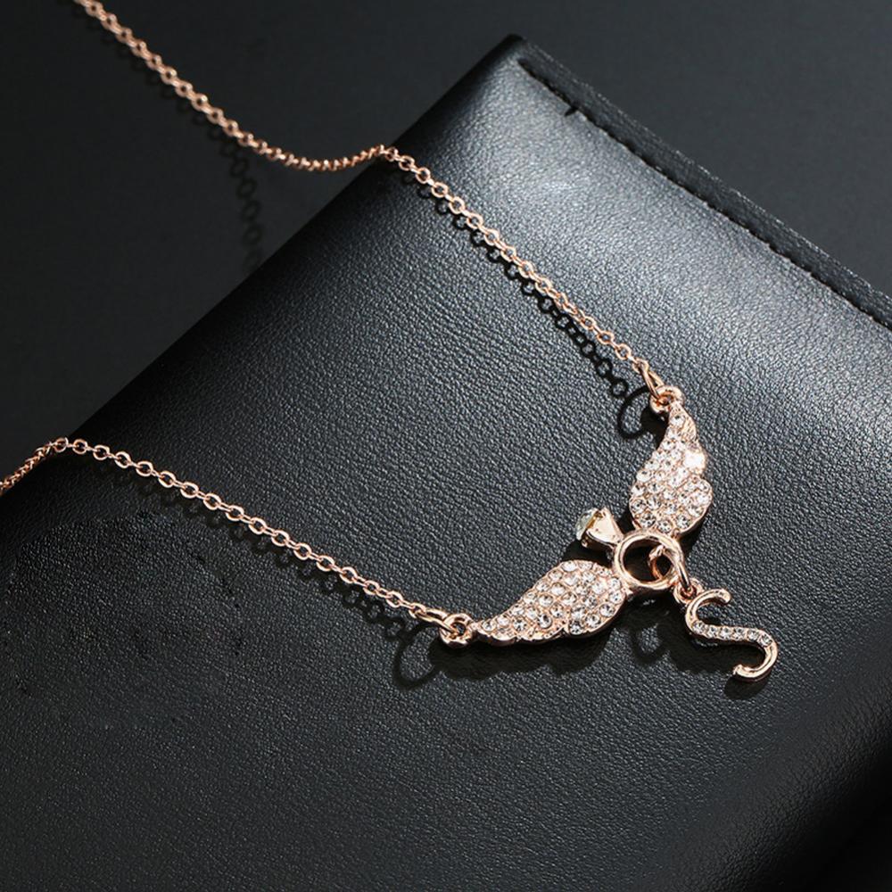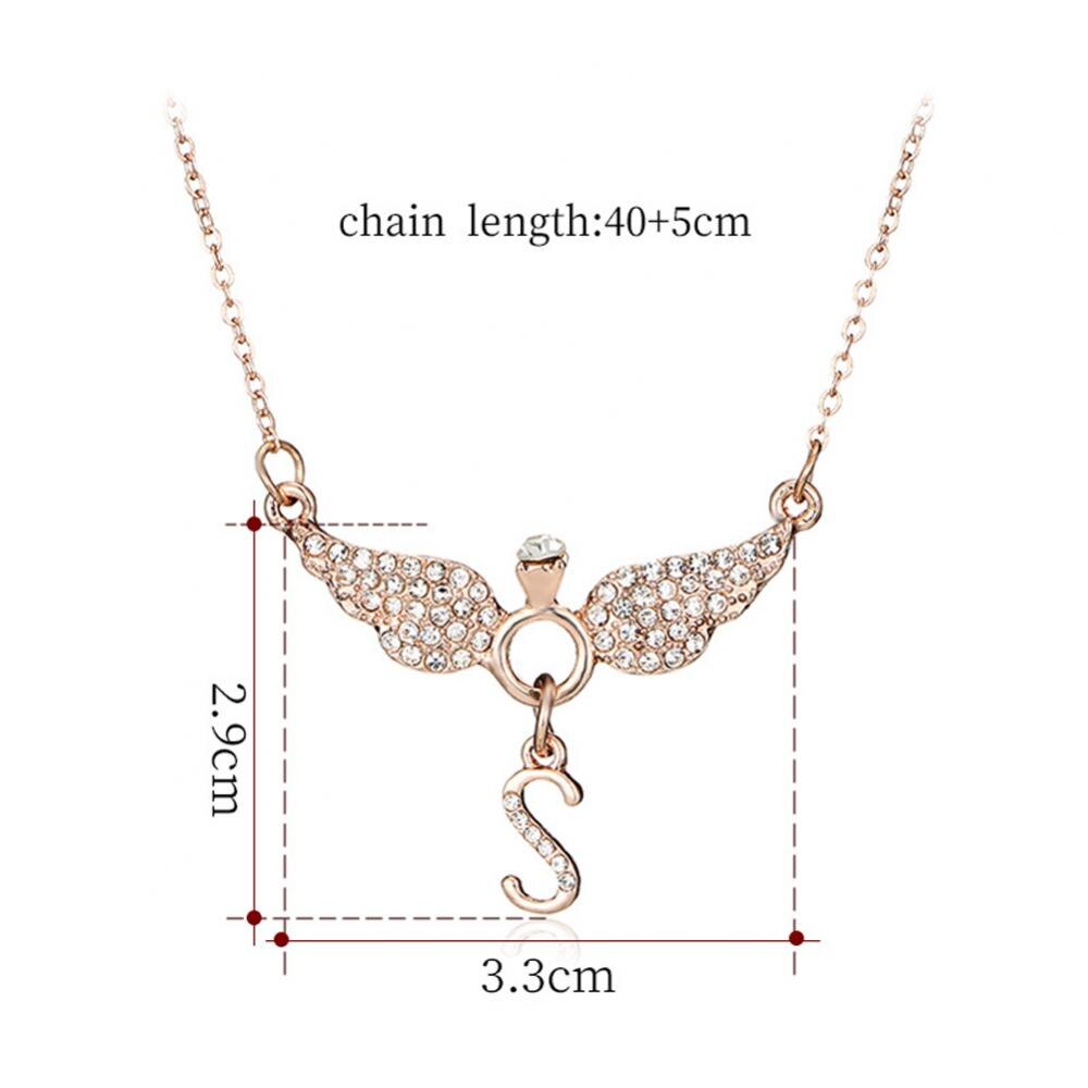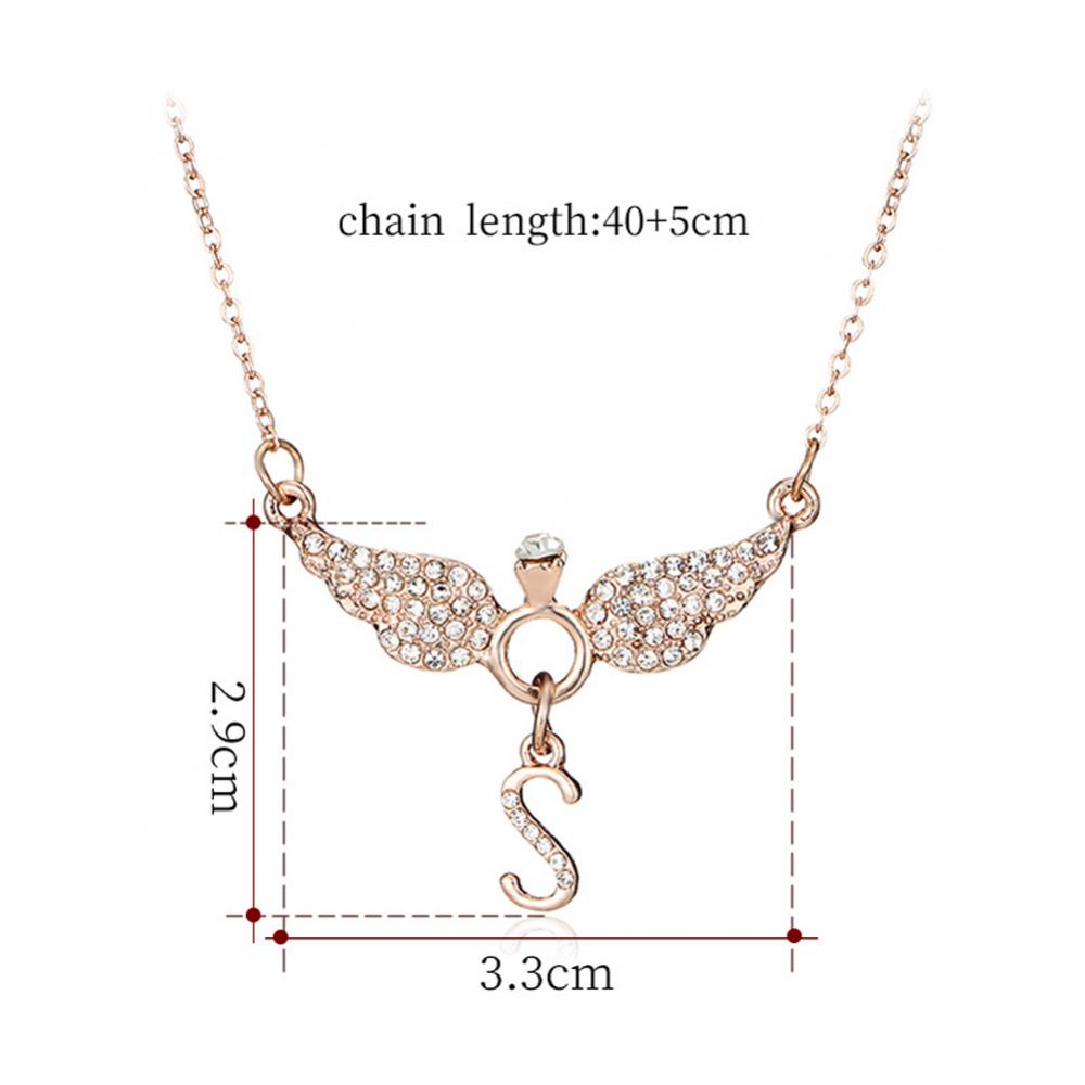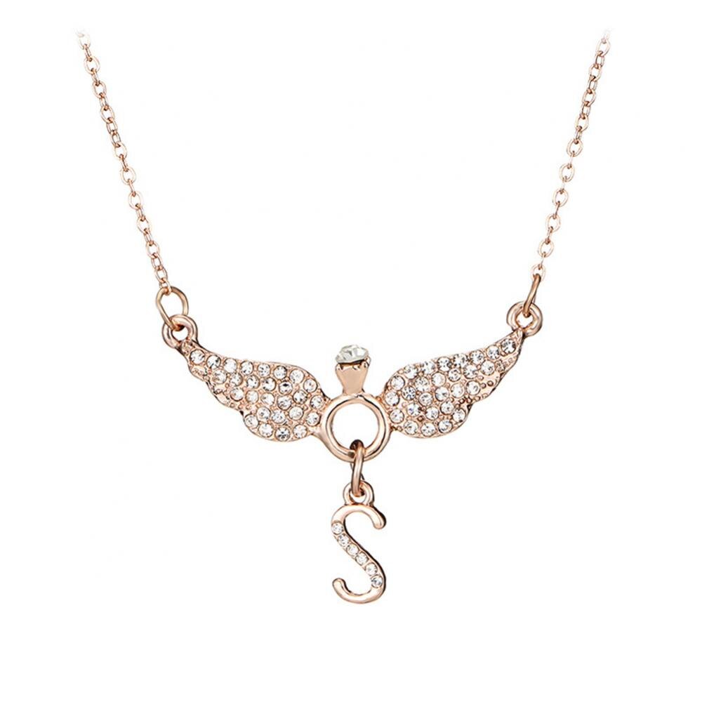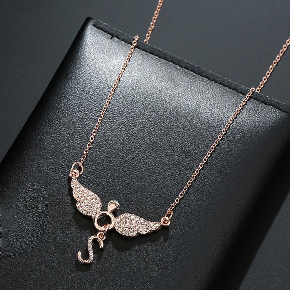 Rhinestone Inlaid Letter S Angel Wing Pendant Chain Necklace Women Jewelry Necklace Women Angel Wing Pendant Angel Charm Gifts