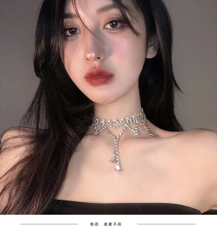 Rhinestone Light Niche Necklace 2021 Female Niche Design Sense Clavicle Chain Ins Hip Hop Neck Chain Collar Women