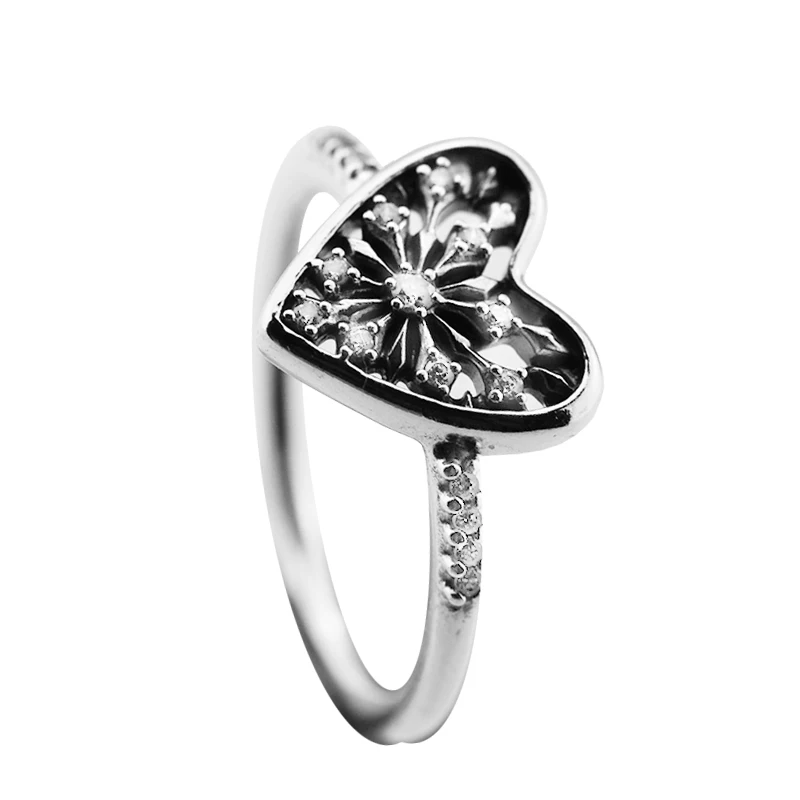 Rings 100% 925 Sterling-Silver-Jewelry Heart of Winter Ring with Clear CZ Silver Rings for Women New Christmas Rings FLR145