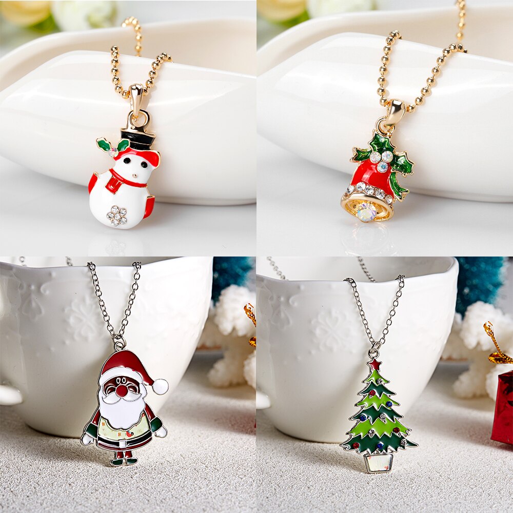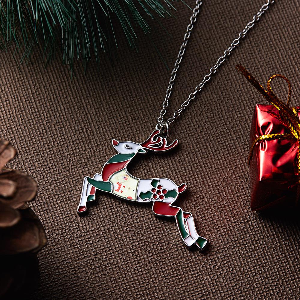 Rinhoo Delicate Enamel Elk Deer Pendant Necklace Christmas Tree Snowman Bells Sock Clavicle Chain Jewelry Collier Femme