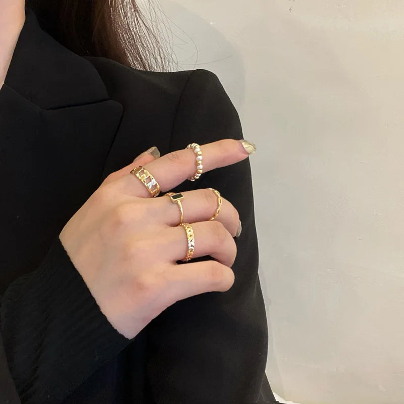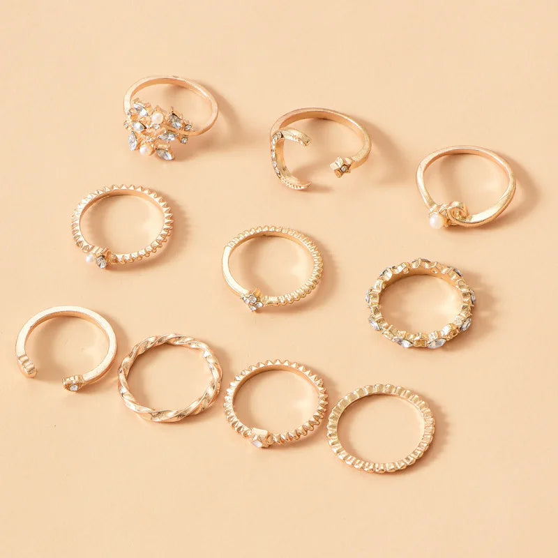 Rinhoo Moon Star Ring Set For Women Shiny Crystal Heart Flower Geometric Metal Finger Rings Trendy Party Jewelry