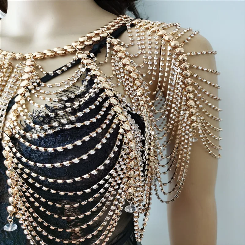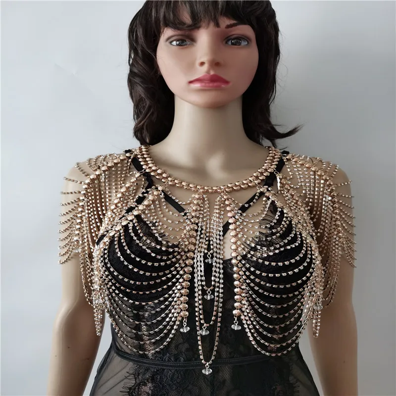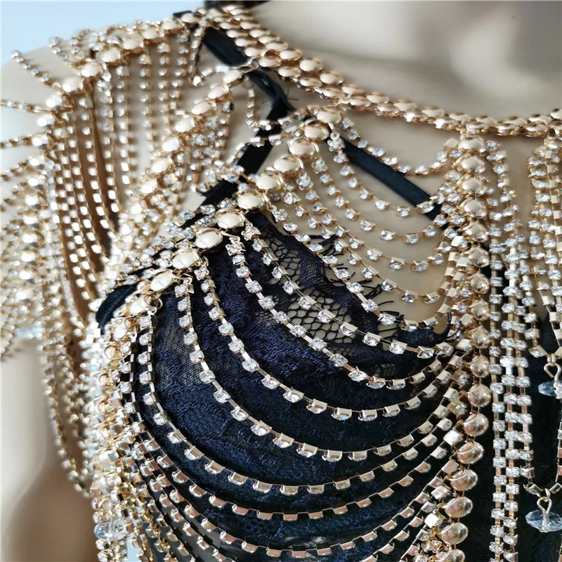 RJRH21 Women Handmade Rhinestone Bra Shoulder Chains Jewelry Bling Crystal Beads Top Costume Jewelry 2 Colors