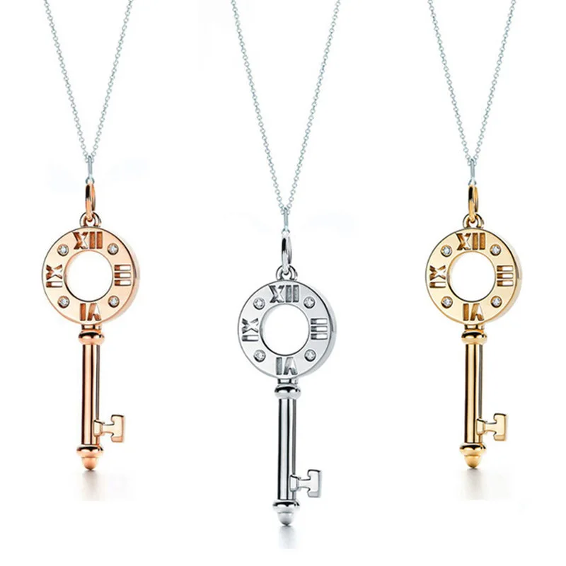ROBOBL Tiff 100% 925 Sterling Silver New Hollow Key Pendant Necklace Watch 18K Yellow Gold, Golden Rose, Platinum Gold Available