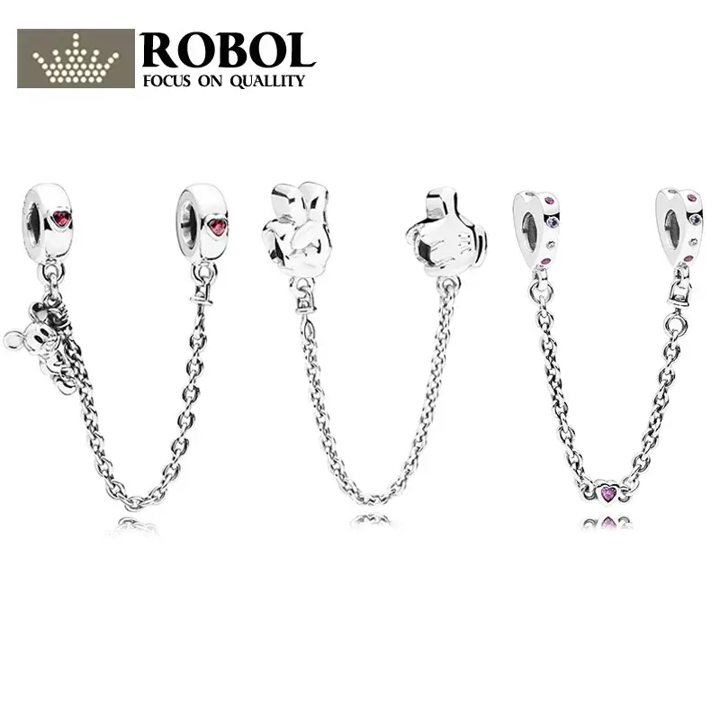 925 Silver Original 1:1 LOGO Climbing MI Mouse Bright Hearts Gestures Red CZ Pan Series Safety Chain Free shipping Jewelry