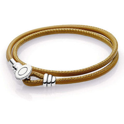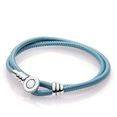 Pan Black Blue Spicy Orange Golden Double Leather Bracelet, Clear CZ High quality leather women's bracelet Copy jewelry