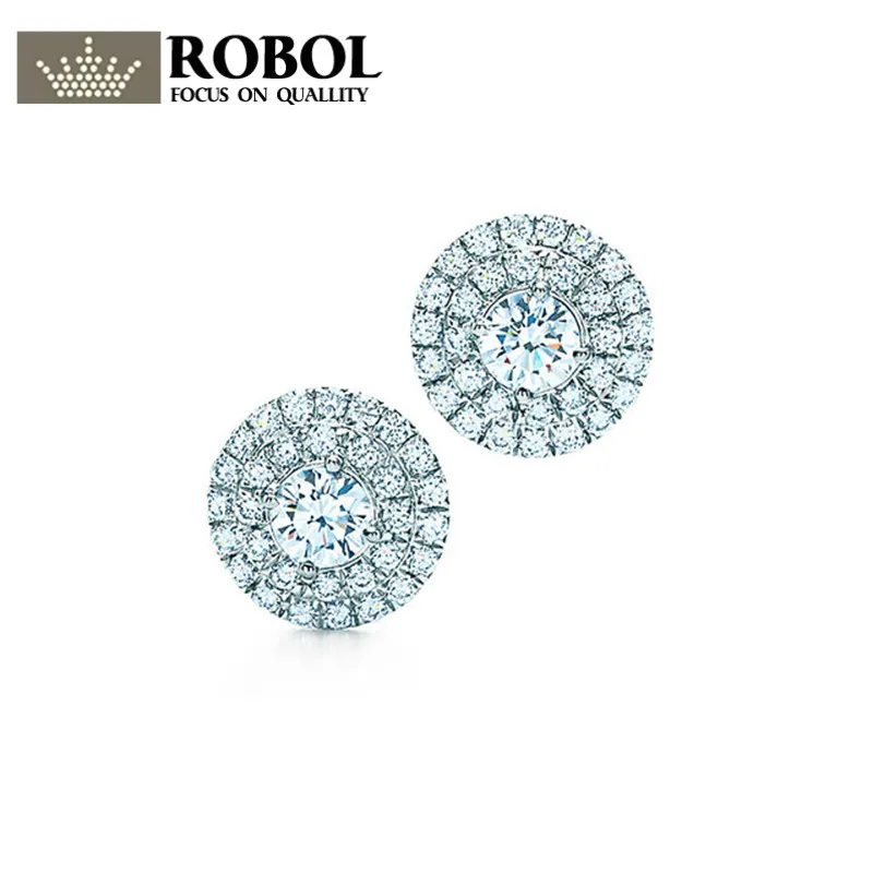 TIFF 925 Sterling Silver Zircon Round Geometry Earrings Fashion Ladies Elegant Zircon Geometric DIY Gift