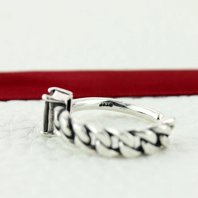 Natural Black Agate Ring 925 Sterling Silver Korean Designer Edition Co Street Jewelry Hiphop Punk Rock Rings