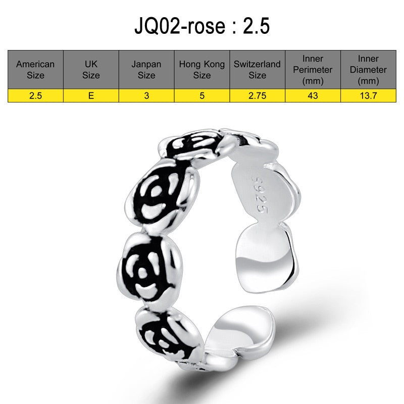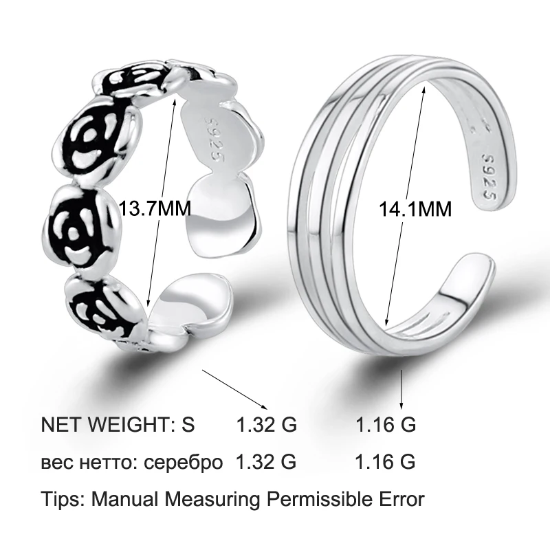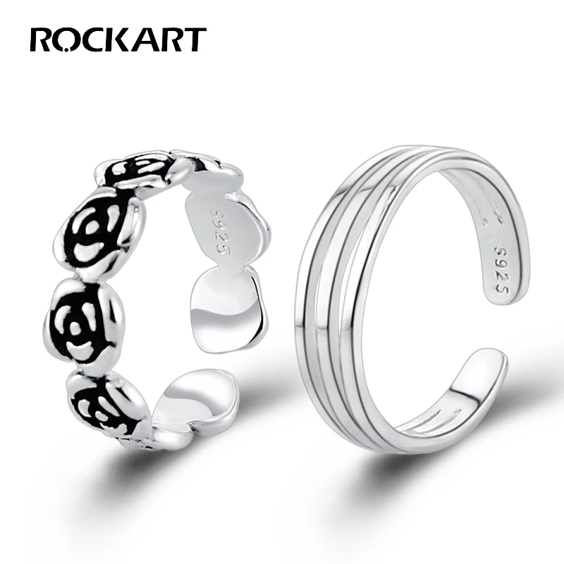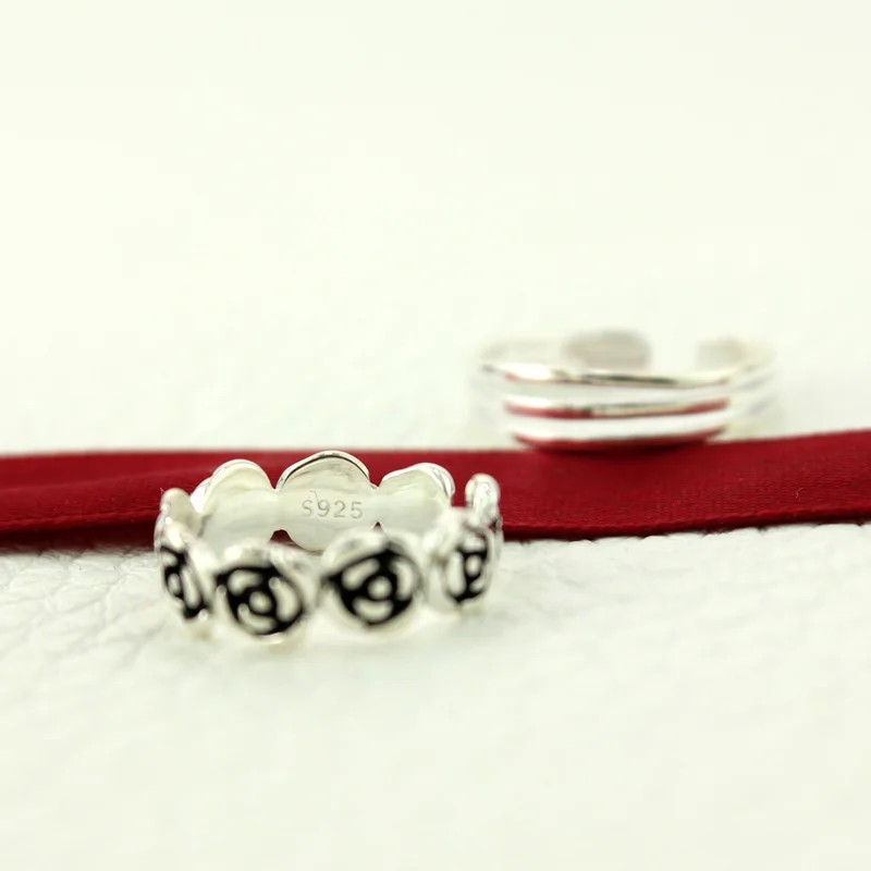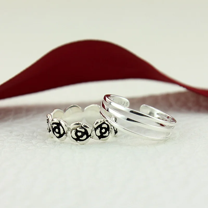 Solid 925 Sterling Silver Three Line Rose Toe Finger Knuckle Ring For Women Adjustable Fine Jewelry Korean Style