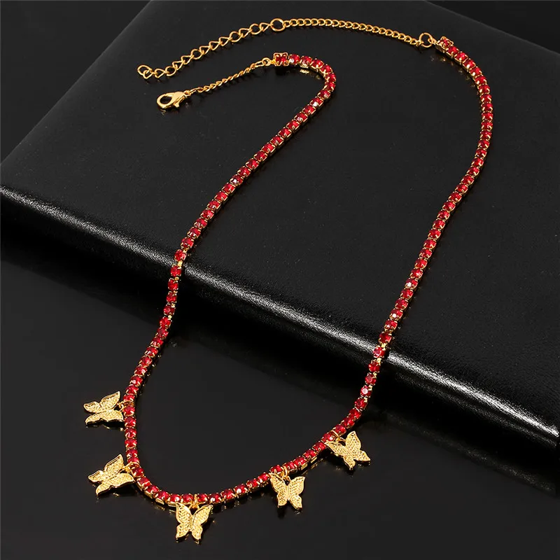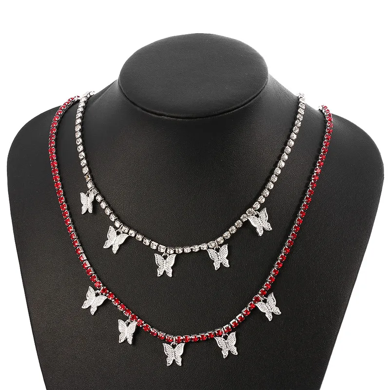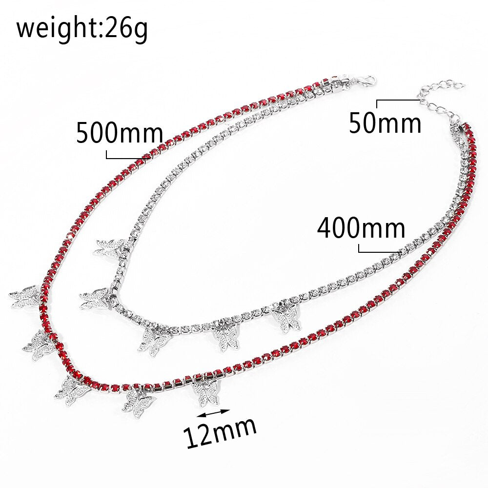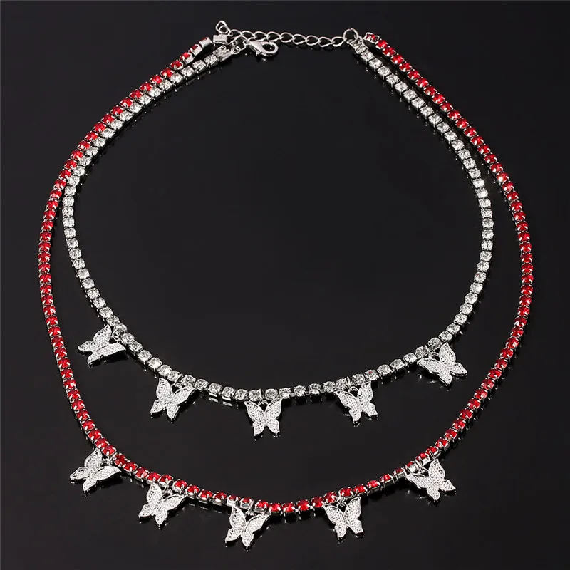 Romantic 2021 Multilayer Butterfly Pendant Necklace for Women Crystal Rhinestone Chain Necklace HIP HOP Jewelry