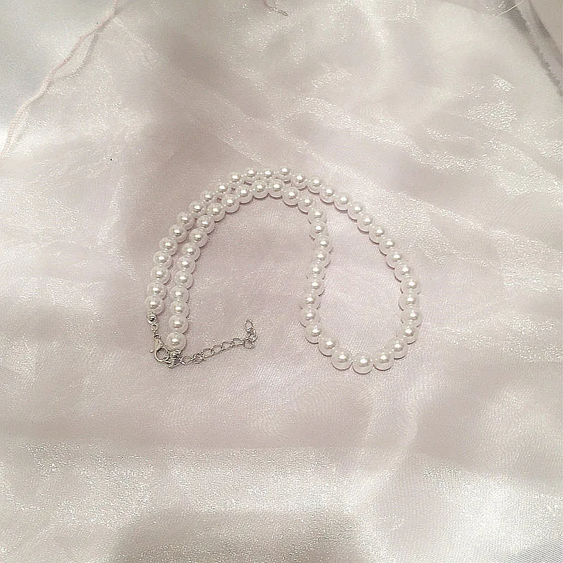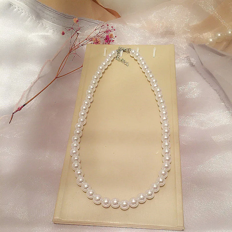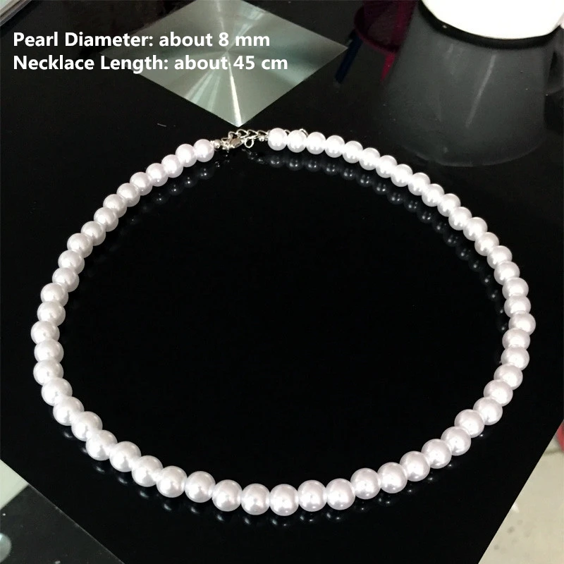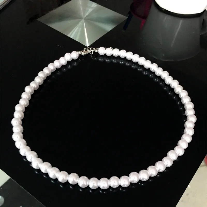 Romantic Elegant White 8 mm Diameter Pearl Necklace for Women Men Girls Teens Wedding Banquet Necklaces 2021 Trend