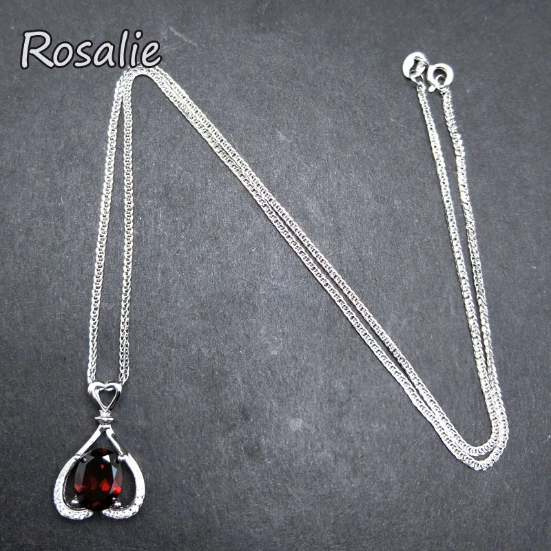 Rosalie,100% natural Mozambique Red Garnet oval cut7*9mm 2.2ct real gemstone pendant necklace for girls office daily wear gift
