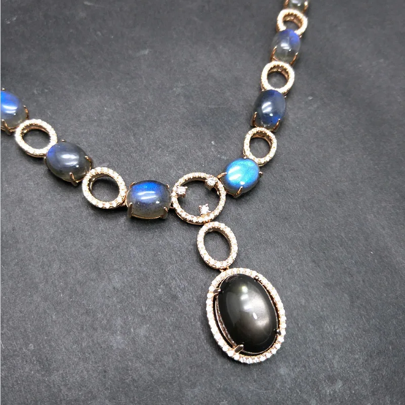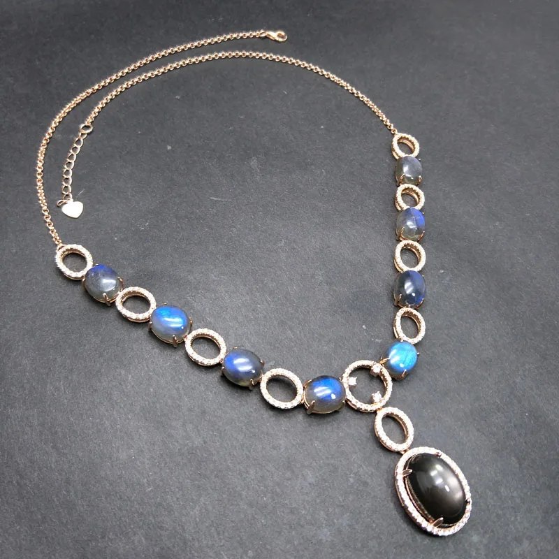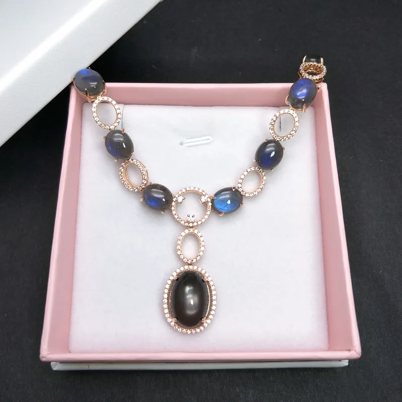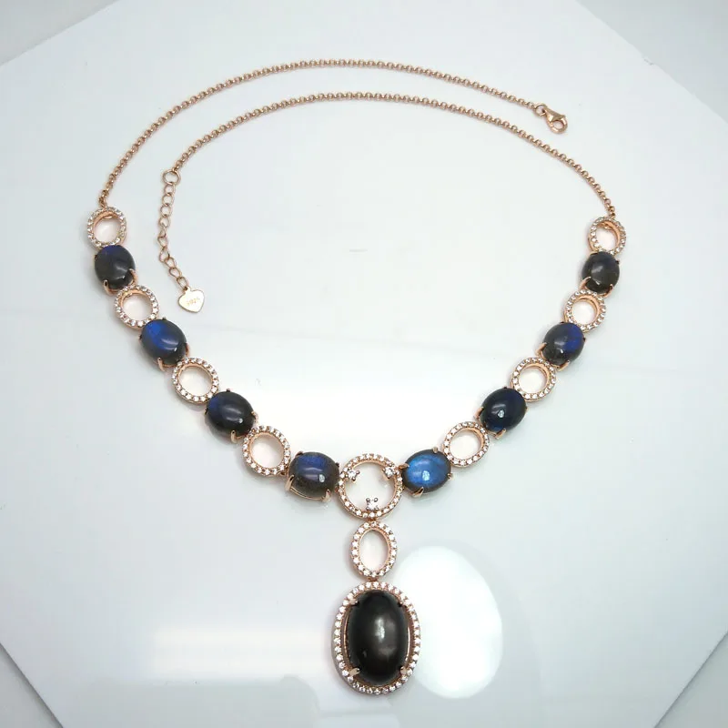 Rosalie,925 Sterling silver rose gold with natural Labradorite moonstone gemstone Big Necklace for women in party nice design