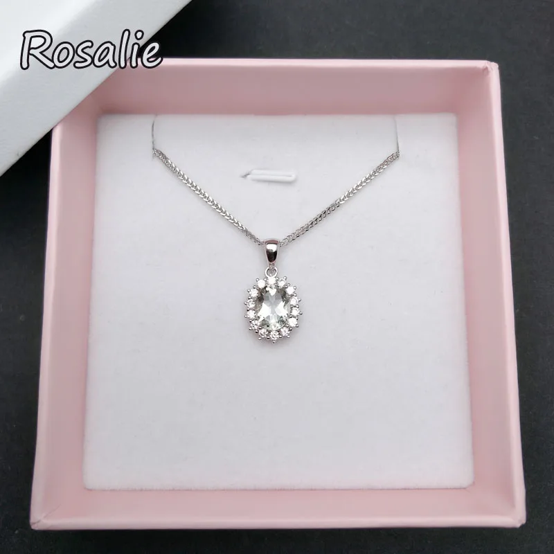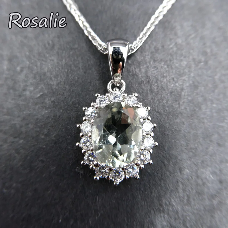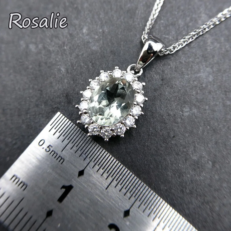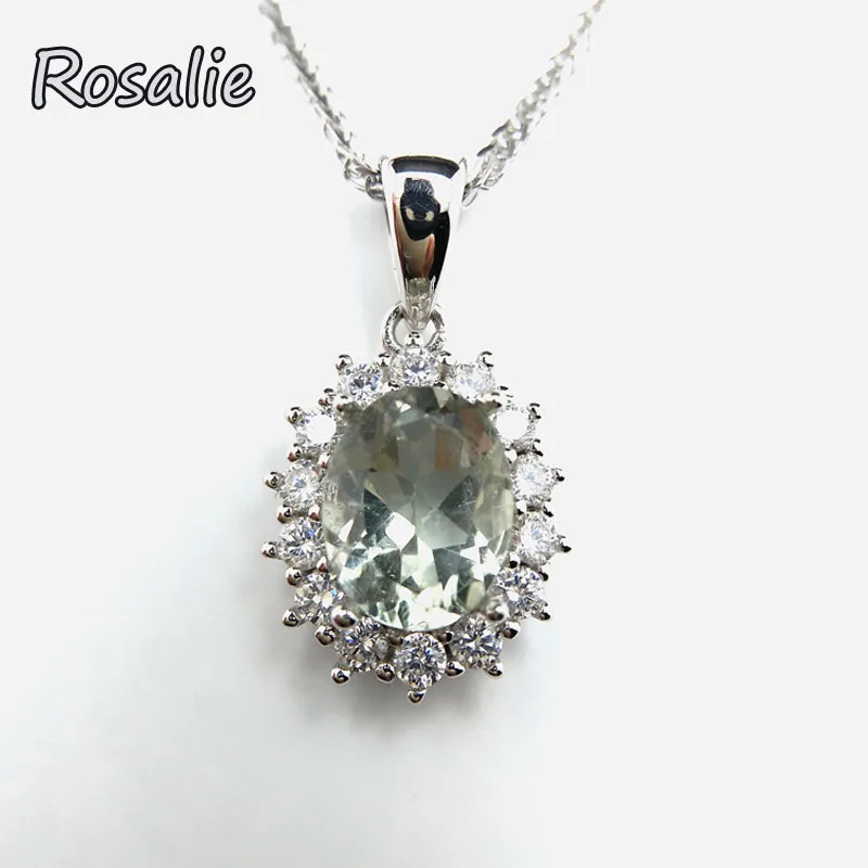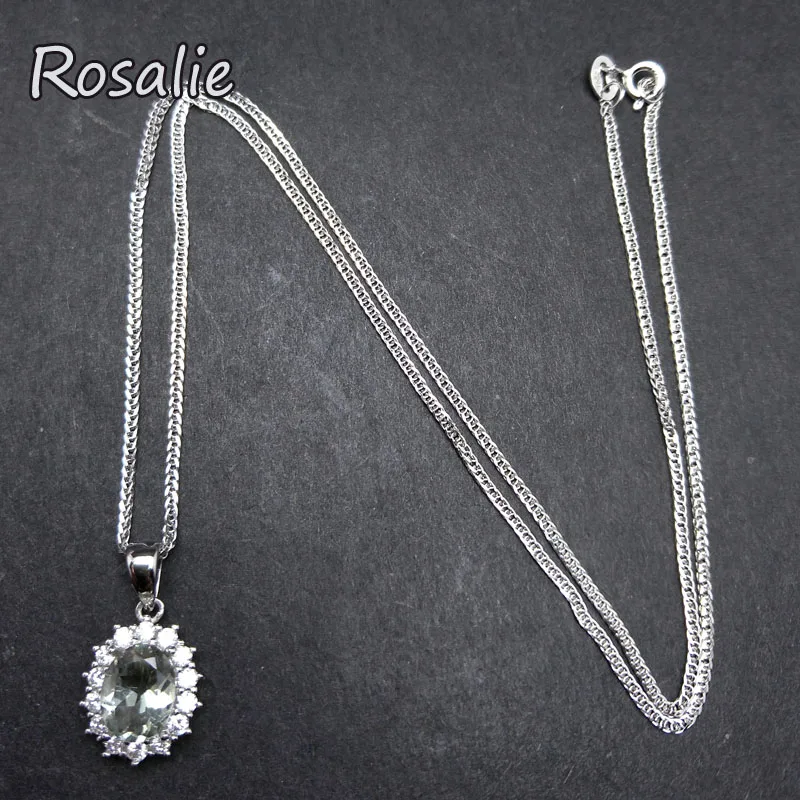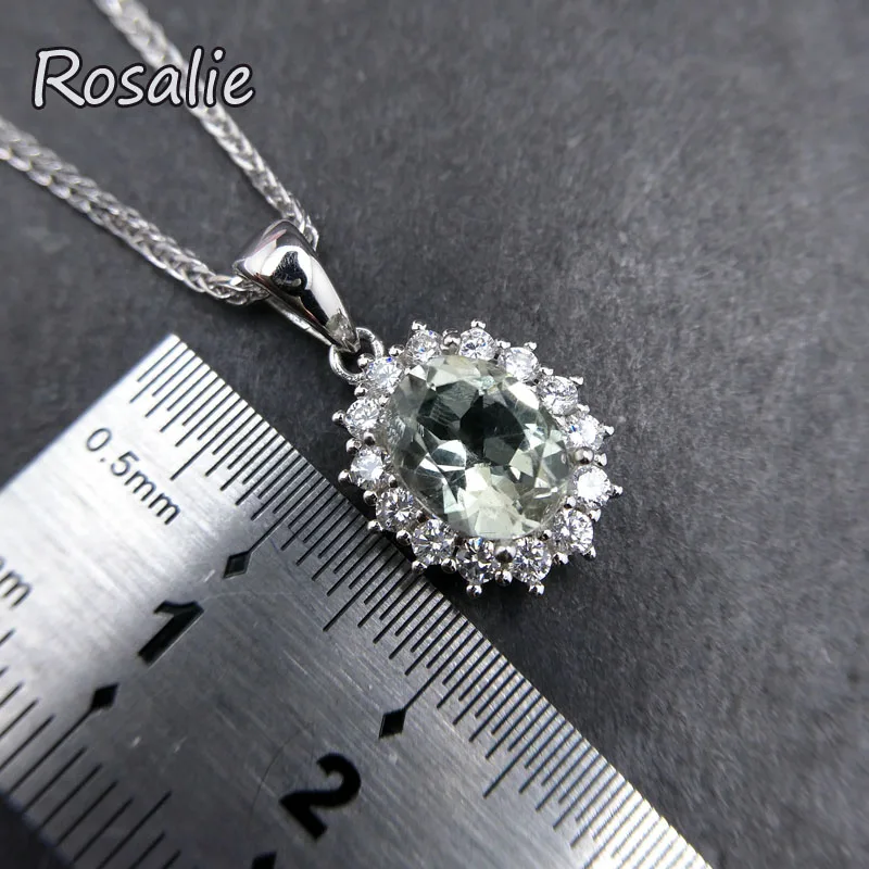 Rosalie, Classic 1.8ct Natural Green Amethyst quartz real gemstone Pendant dianna Necklace 925 Sterling Silver for girls