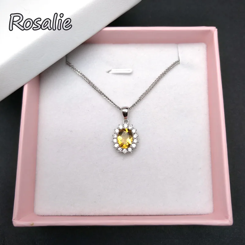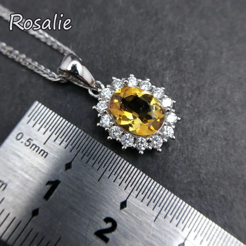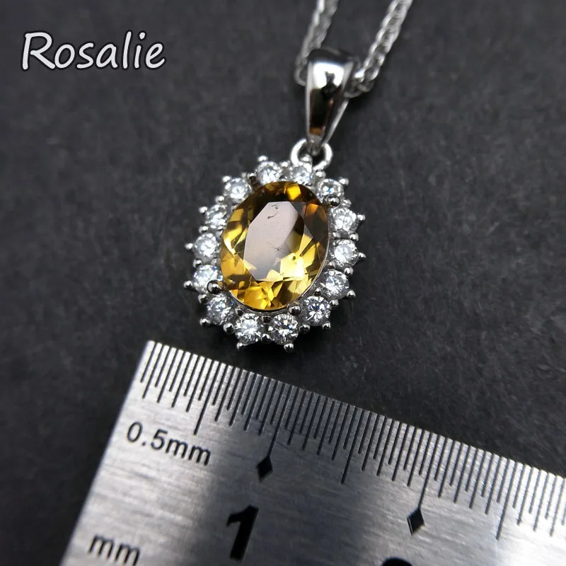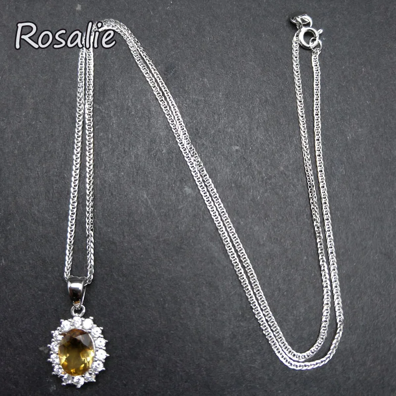 Rosalie,Diana design pendant necklace with natural Citrine oval 7*9 2ct real gemstone fine jewelry classic design for women