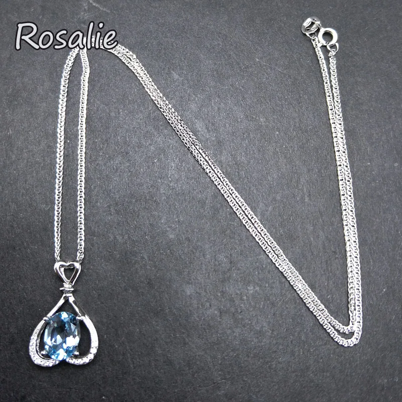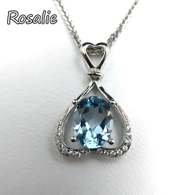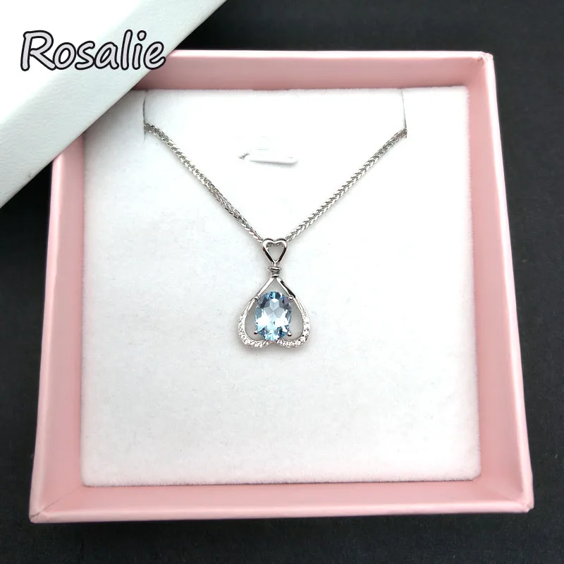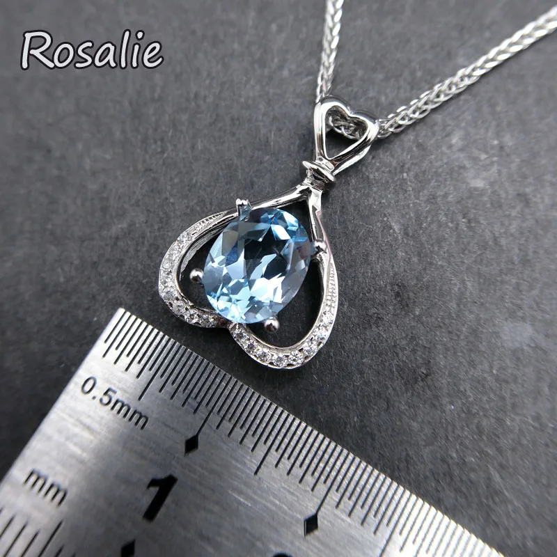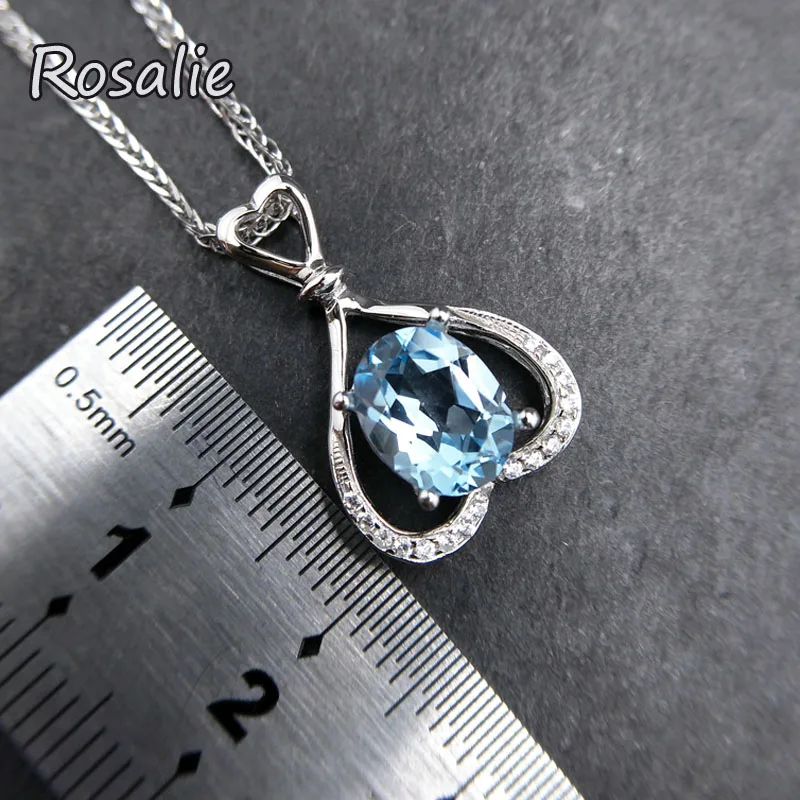 Rosalie,Natural 2.2ct sky Blue Topaz Pendants Solid 925 Sterling Silver Charm Fashion Fine Jewelry best gift For Women girls