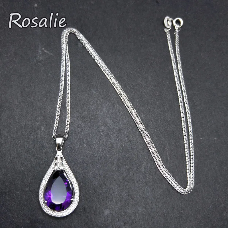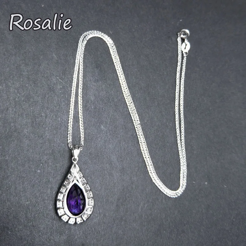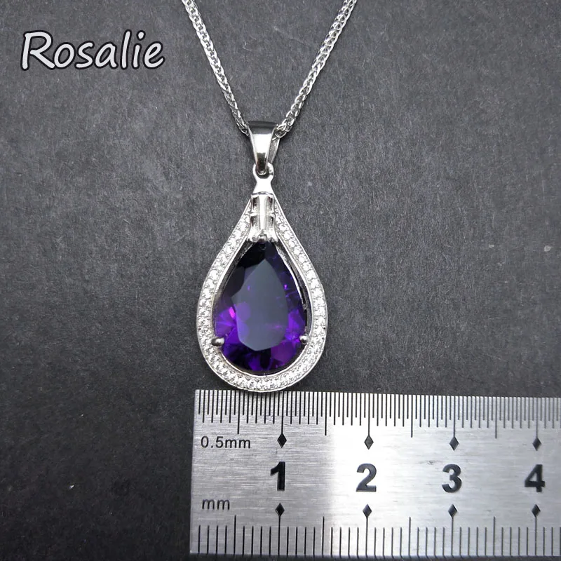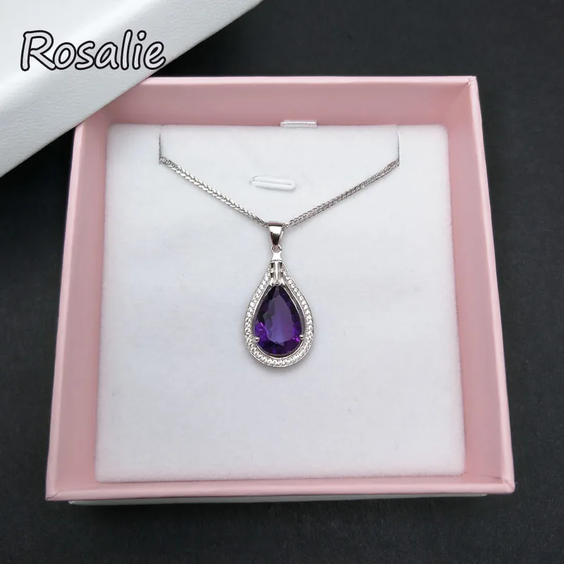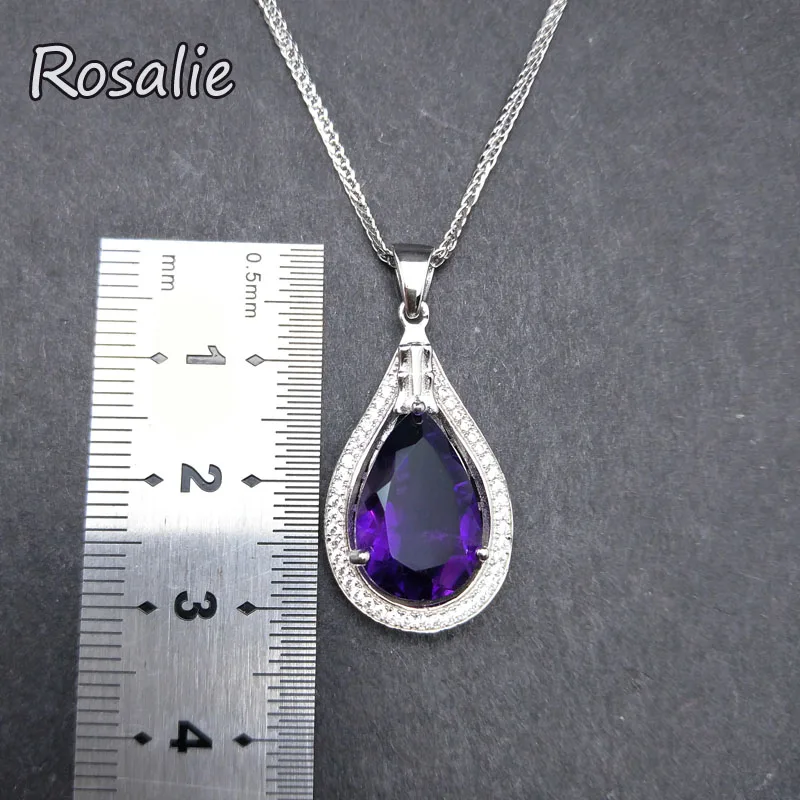 Rosalie, Natural 5.2ct african deep color Amethyst Pendants Genuine Solid 925 Sterling Silver Fashion Purple Jewelry for women