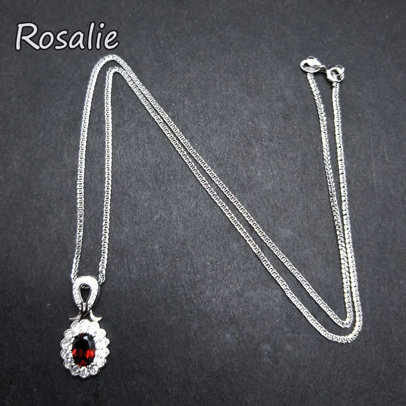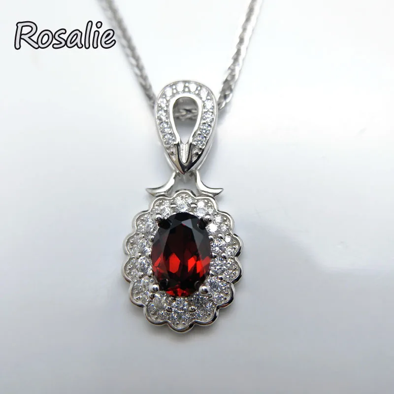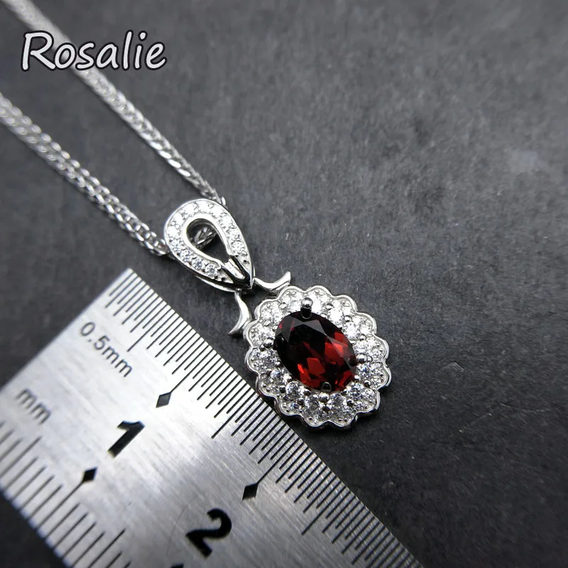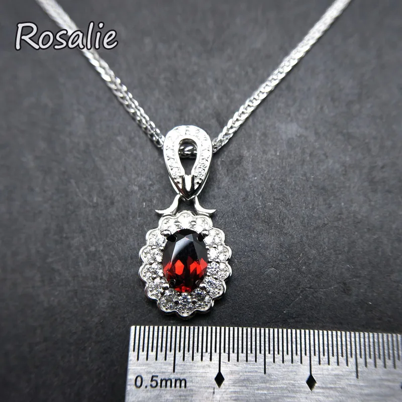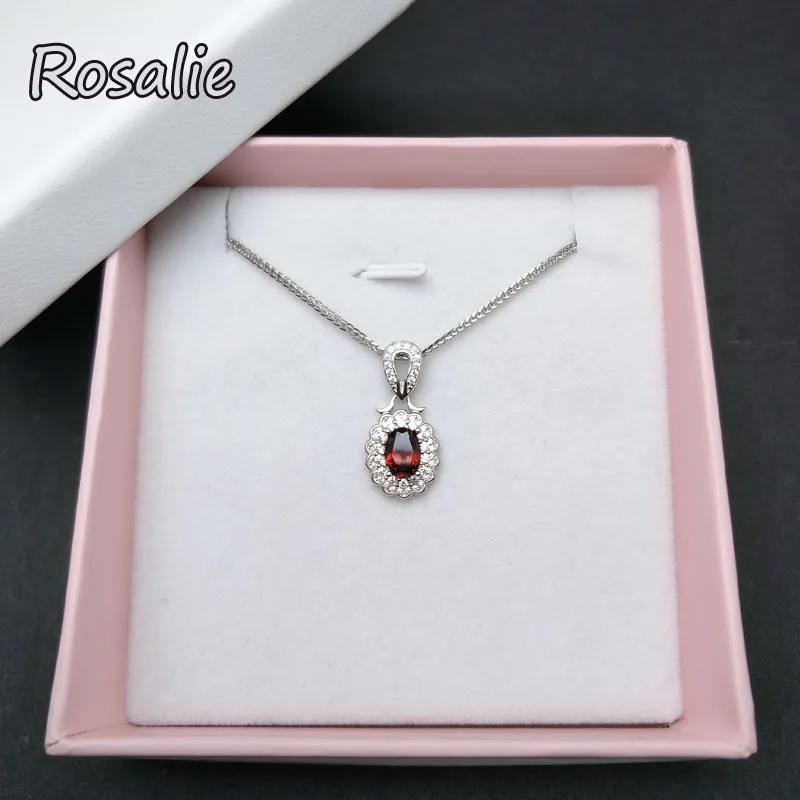 Rosalie,Natural Mozambique Red garnet gemstone pendant necklace 925 sterling silver elegant design for women daily wear gift
