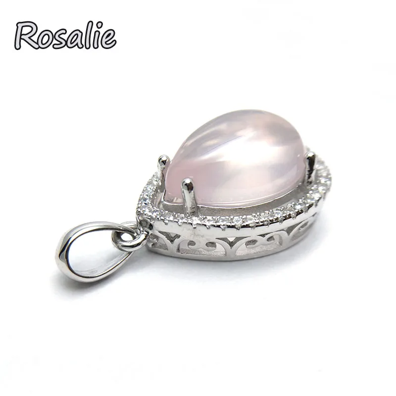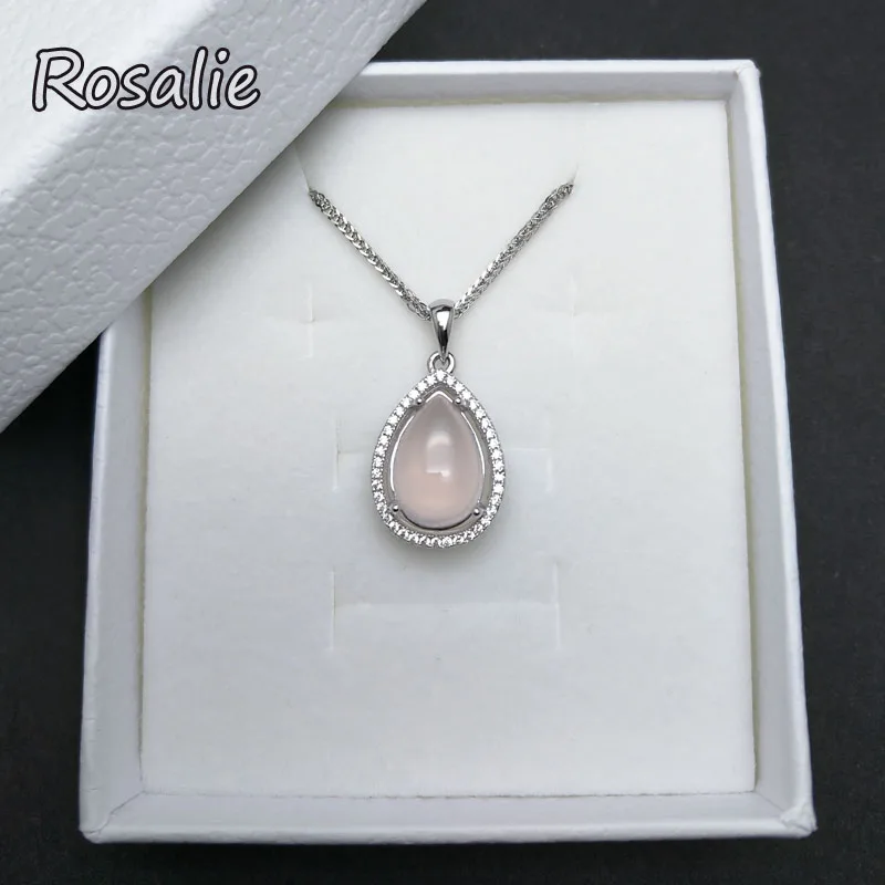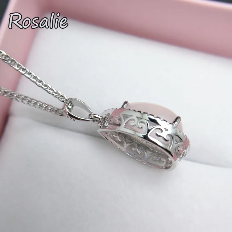 Rosalie,Natural rose quartz 5ct round gemstone simple pendant 925 Sterling Silver gemstone fine Jewelry for women daily wear