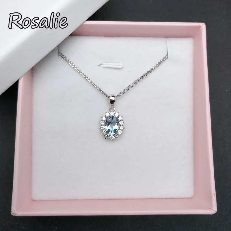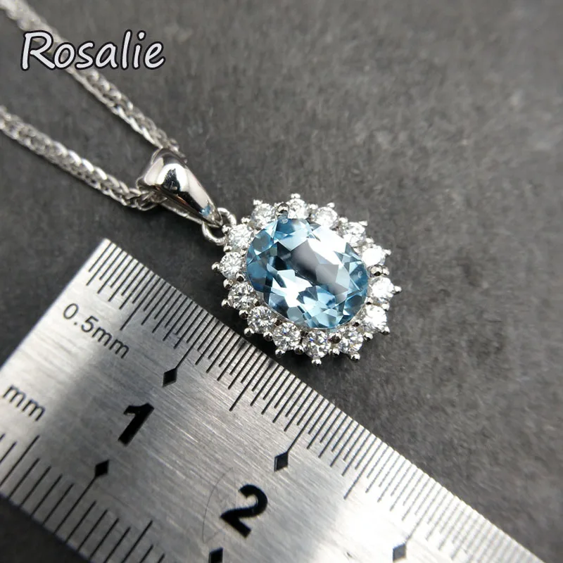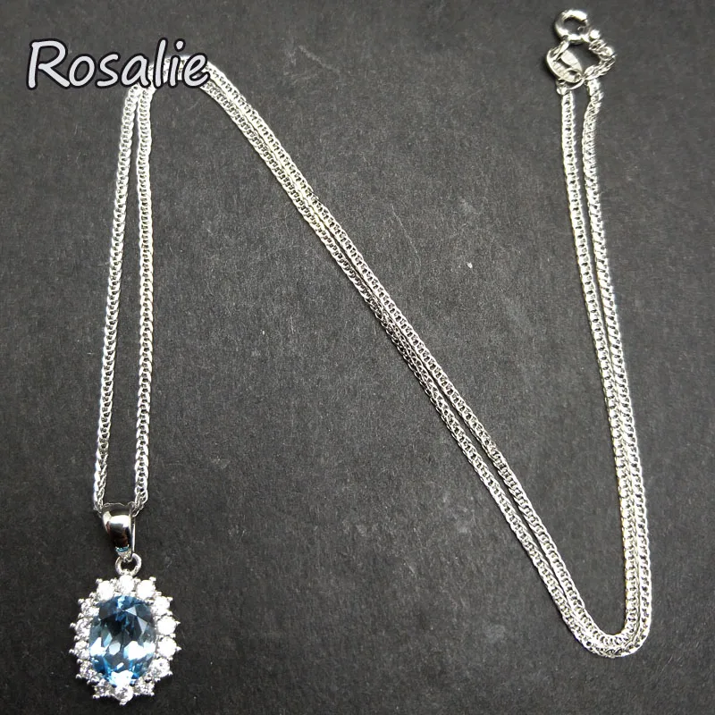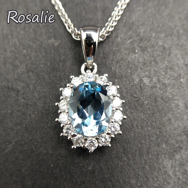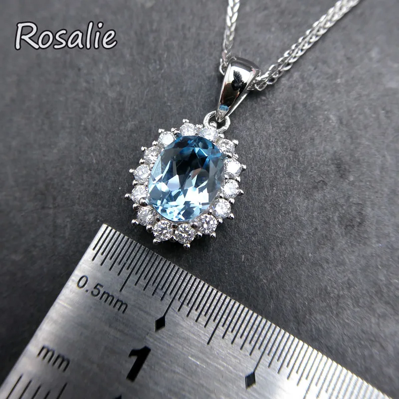 Rosalie,Natural Sky blue topaz oval 7*9mm 2.5ct gemstone pendant necklace dianna design in 925 sterling silver for women gift
