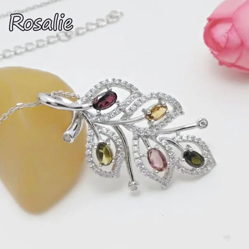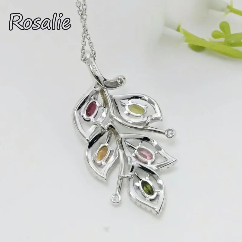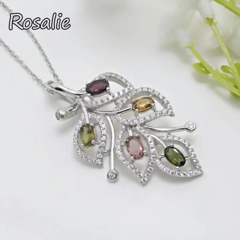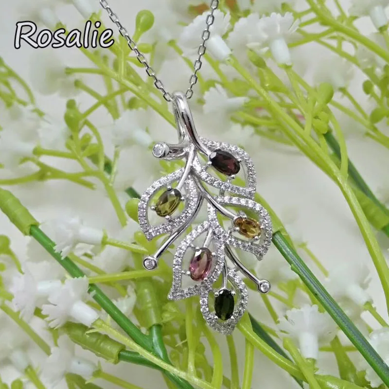 Rosalie,Tree Leaves with natural brazil natural fancy color tourmaline pendant 925 sterling silver necklace for women in fahsion