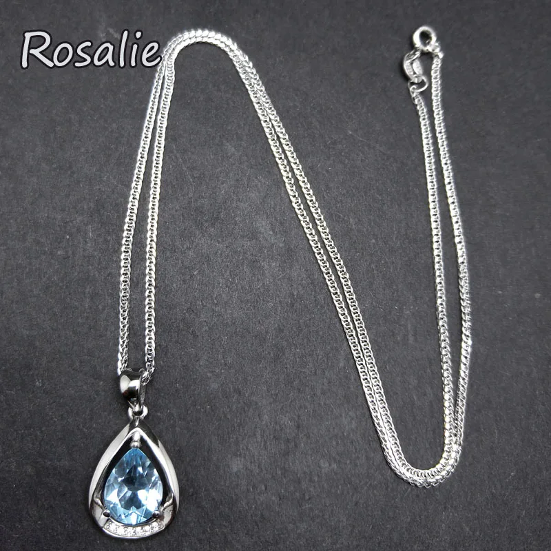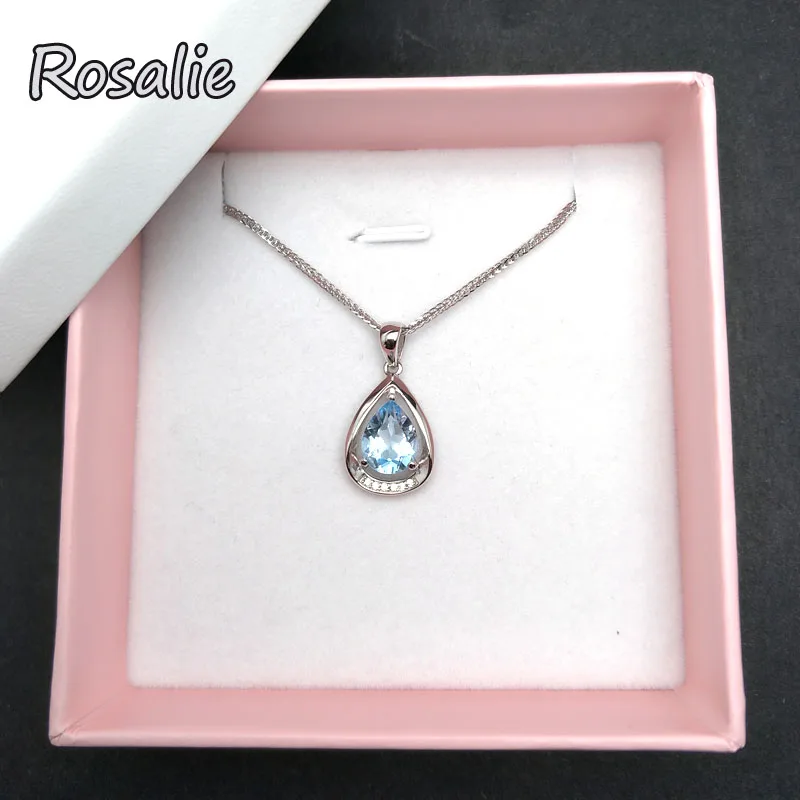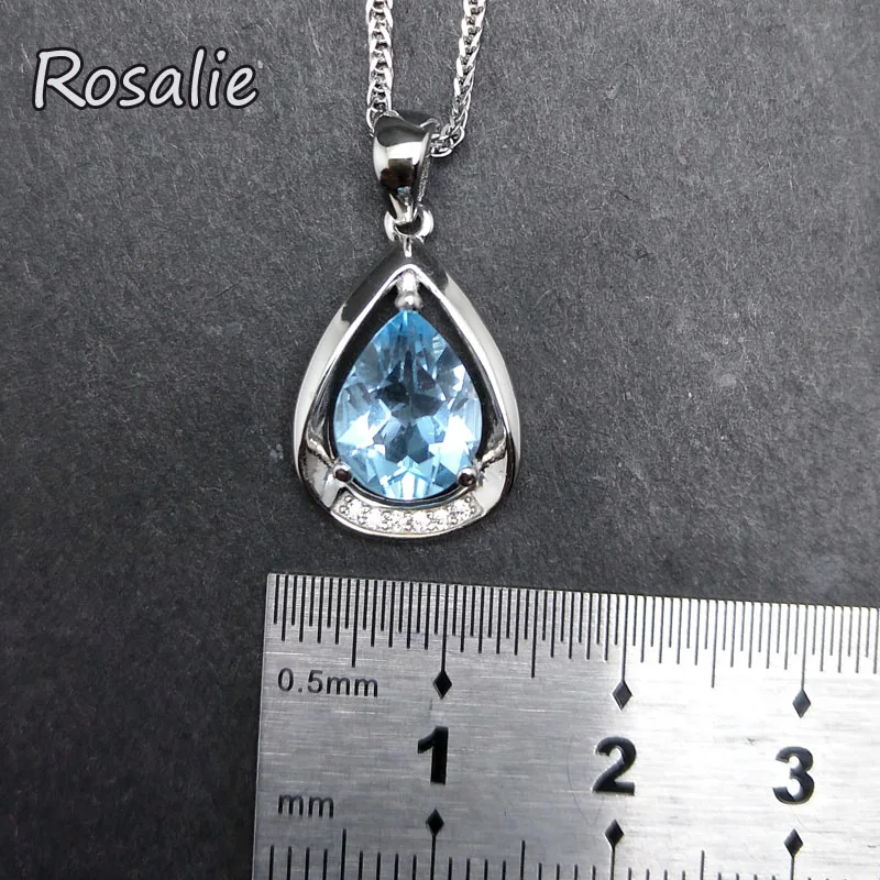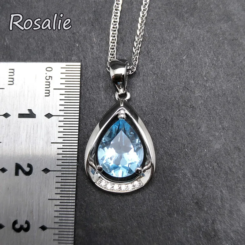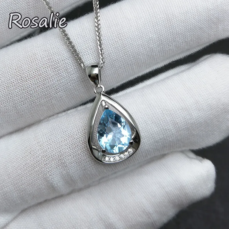 Rosalie,water drop 2.5ct Natural stone Sky Blue Topaz Pendant pear Cut Solid 925 Sterling Silver Jewelry for women best gift